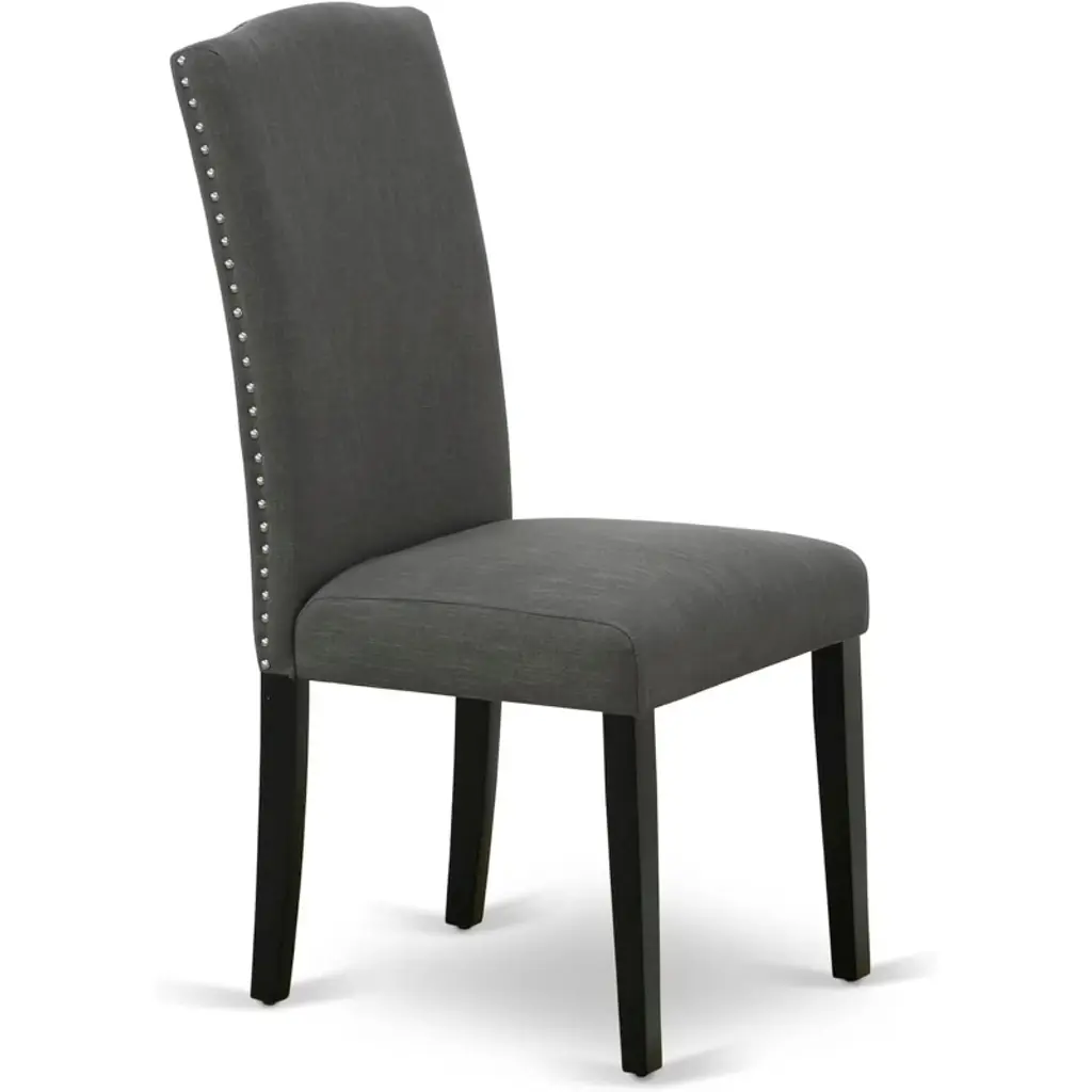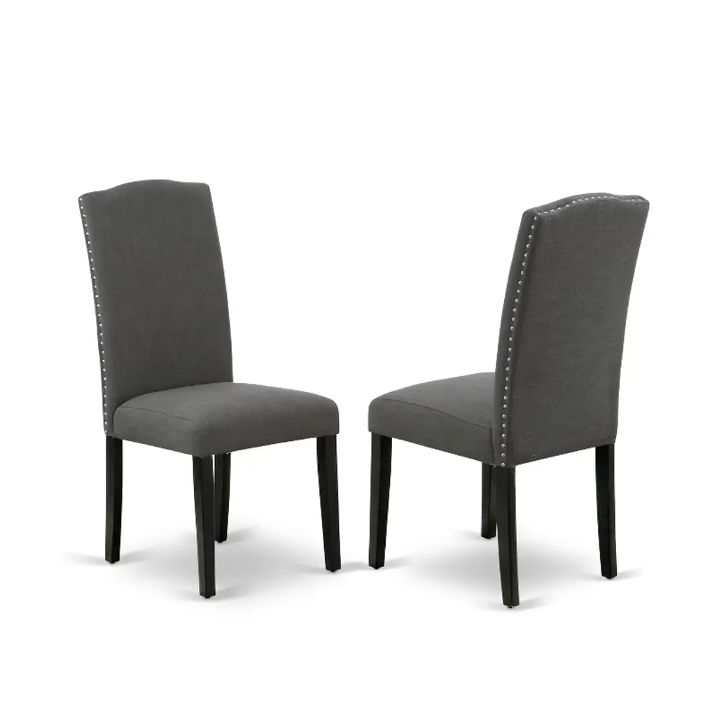 Homestock 7Pc Rectangular 60 Inch Dining Table And Six Parson Chair With Black Leg And Linen Fabric Dark Gotham Grey