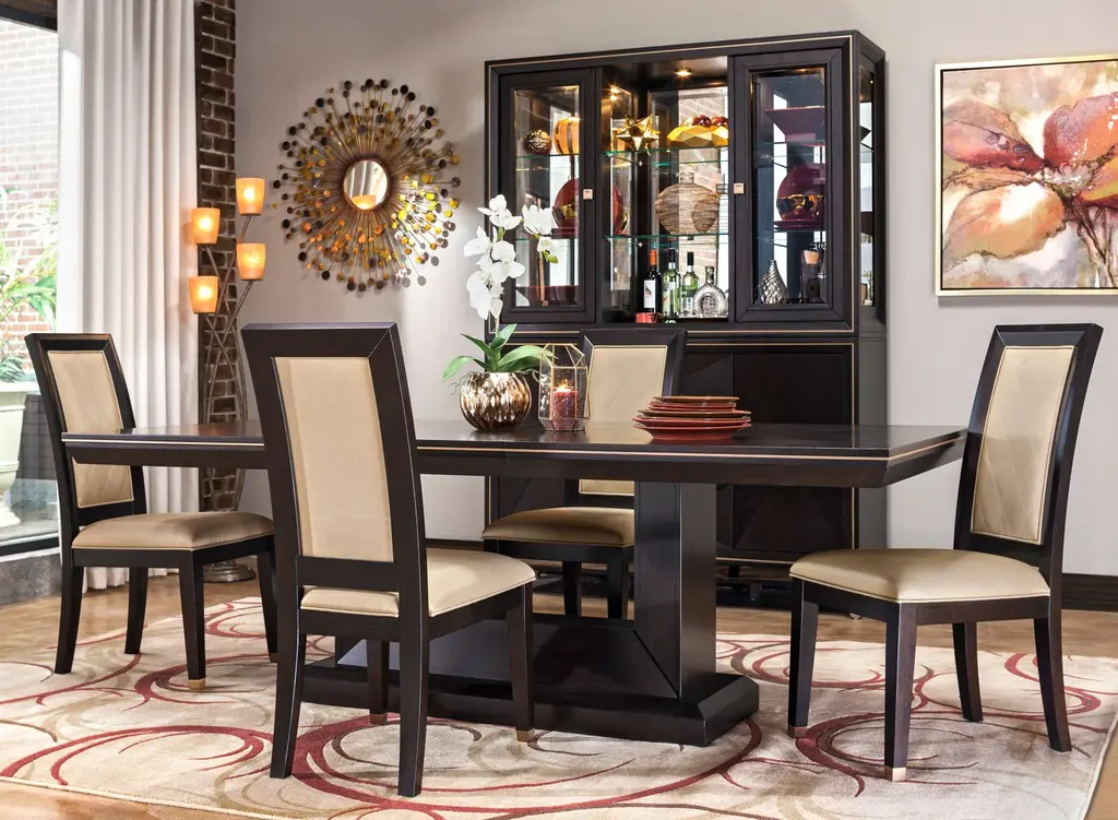 Treat your room's decor with a new and polished look with this modern Dining Set. Wow your guests with this stunning designed dinning set. Engineered for maximum stability, rest assured that this table will hold up for a very long time. This set is bathed in a all backgroud suitable color finish for a country feel right in your own home. Perfect for family dinners, casual breakfasts, or entertaining guests, this set combines form and function to enhance your home. Easy to clean and maintain, it’s an ideal choice for kitchens, dining rooms, or open-concept spaces.
