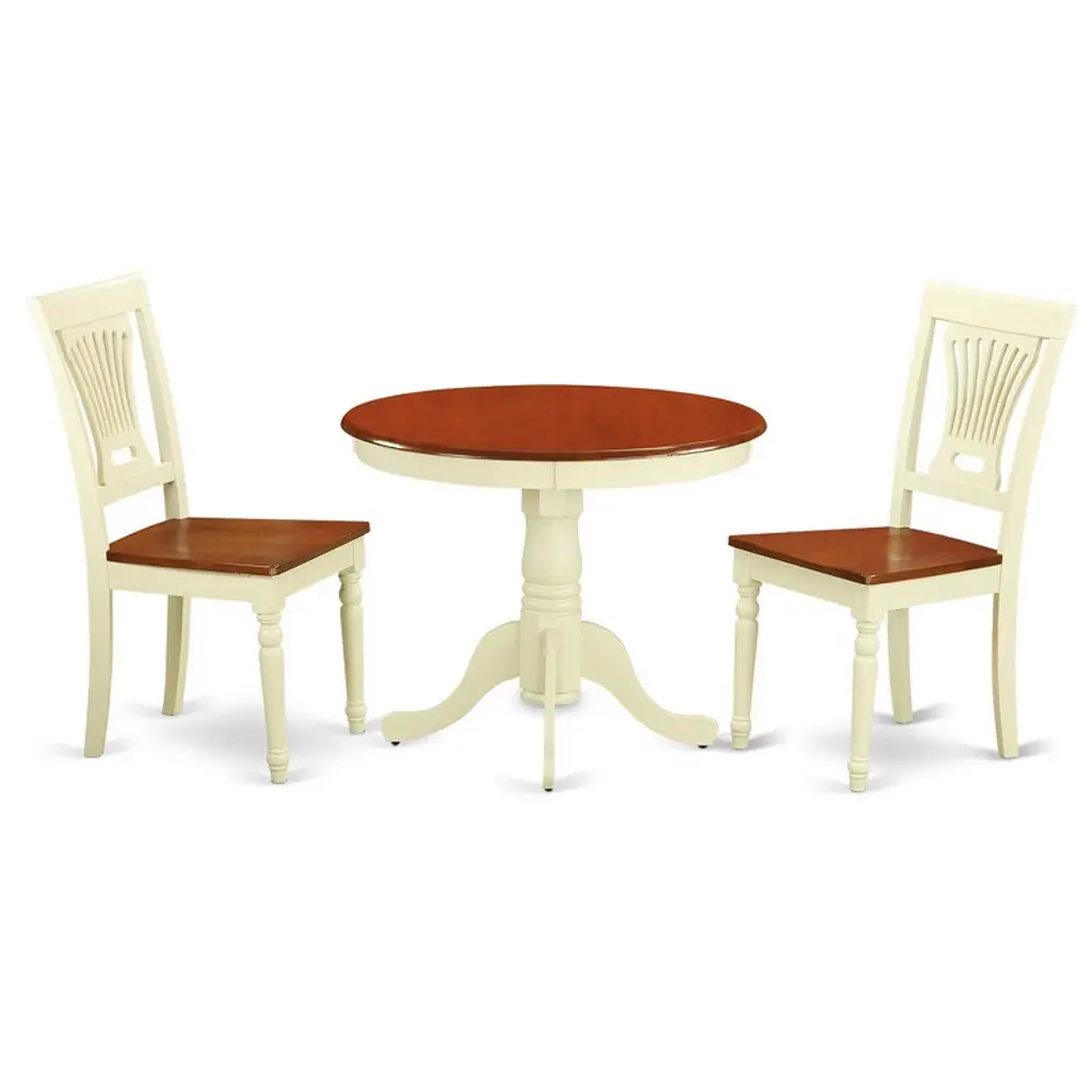 Homestock Kitchen Nook Dining Set-round Table Plus 2 Dining Chairs, Buttermilk And Cherry