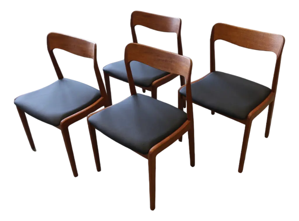 Ib Kofod Larsen Set Of Six Fully Restored Dining Chairs, Custom Upholstery