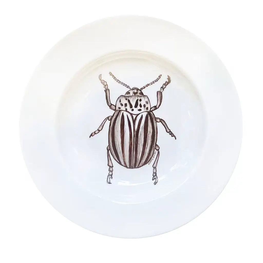 Inspired by the underground wonder, these fine ceramic plates ideally complement coastal tables. A minute hand-painting process where the monochrome decoration is inspired by collections of insects in the "Cabinets de curiosités". Dishwasher safe belongs to a set that includes a soup, a dinner plate, and a dessert plate.