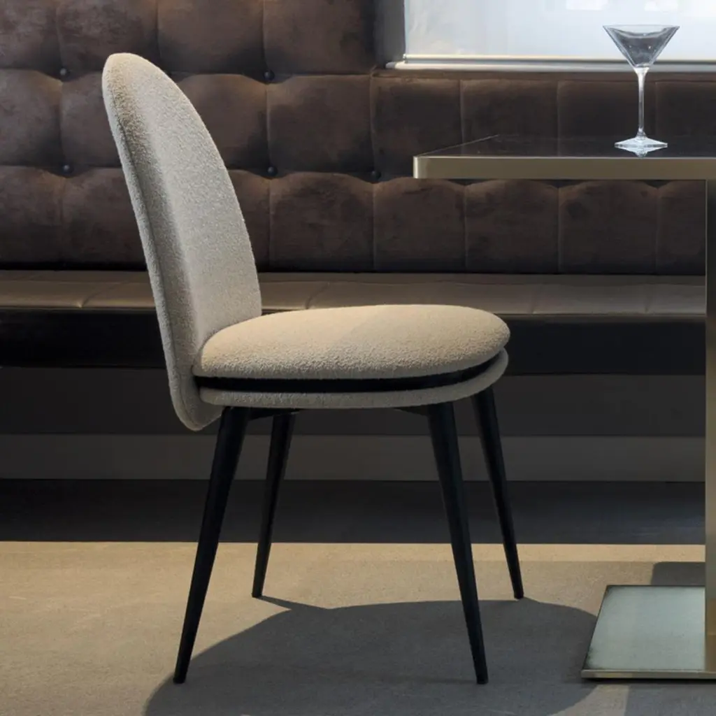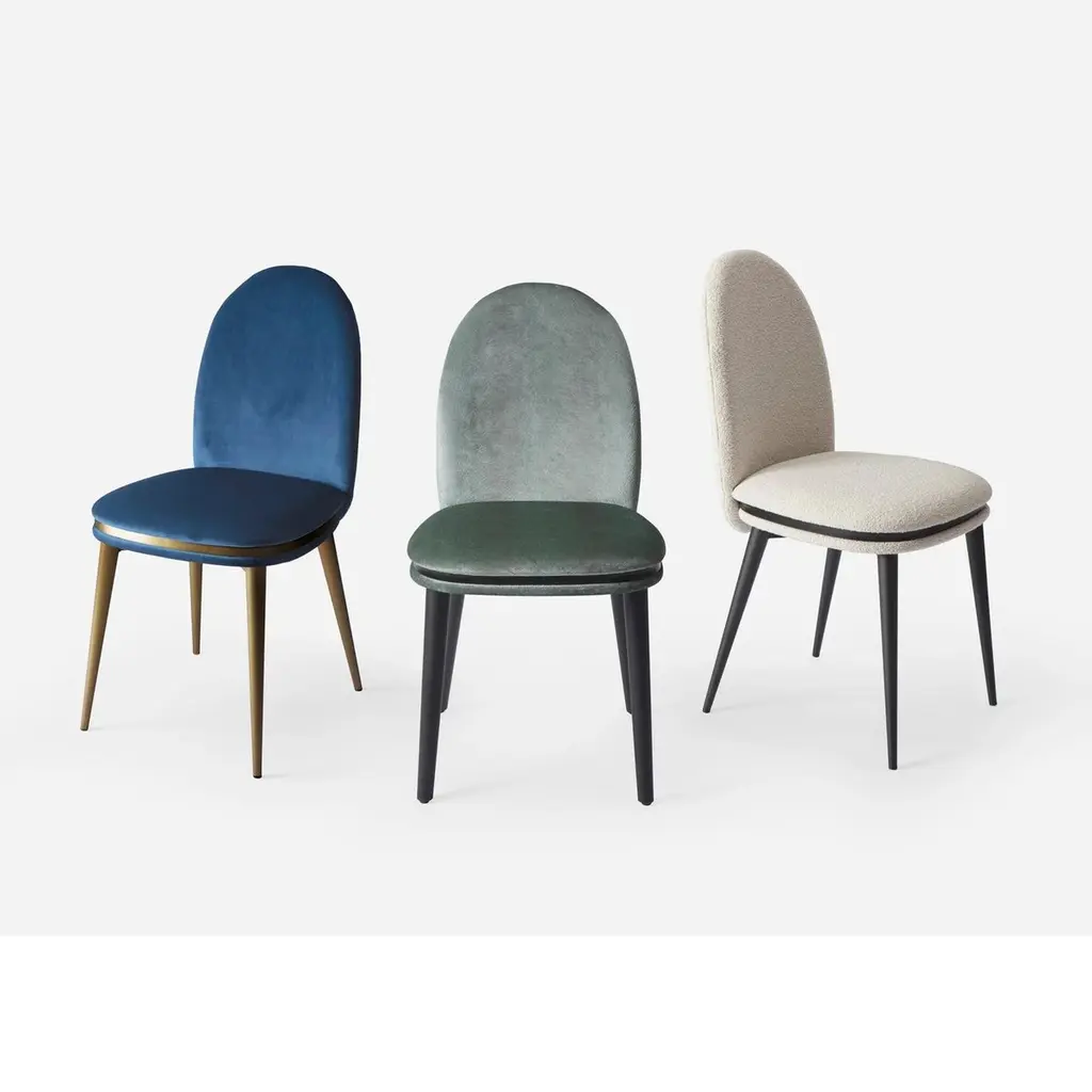 Dining chair enriched by sinuous shapes and geometries that come from the past with captivating lines, a refined design and great personality ideal for contract and home use. Black metal base with upholstered seat & enveloping back. Handcrafted in Italy.We will be glad to check with the factory’s technical team if sizes, finishes, and colors can be customized. We do our best to expedite production and to ship and deliver product within the listed lead time, however current lead times might be longer due to global shipping backlog and delays. These delays are out of our control and cannot be a reason to cancel an order..