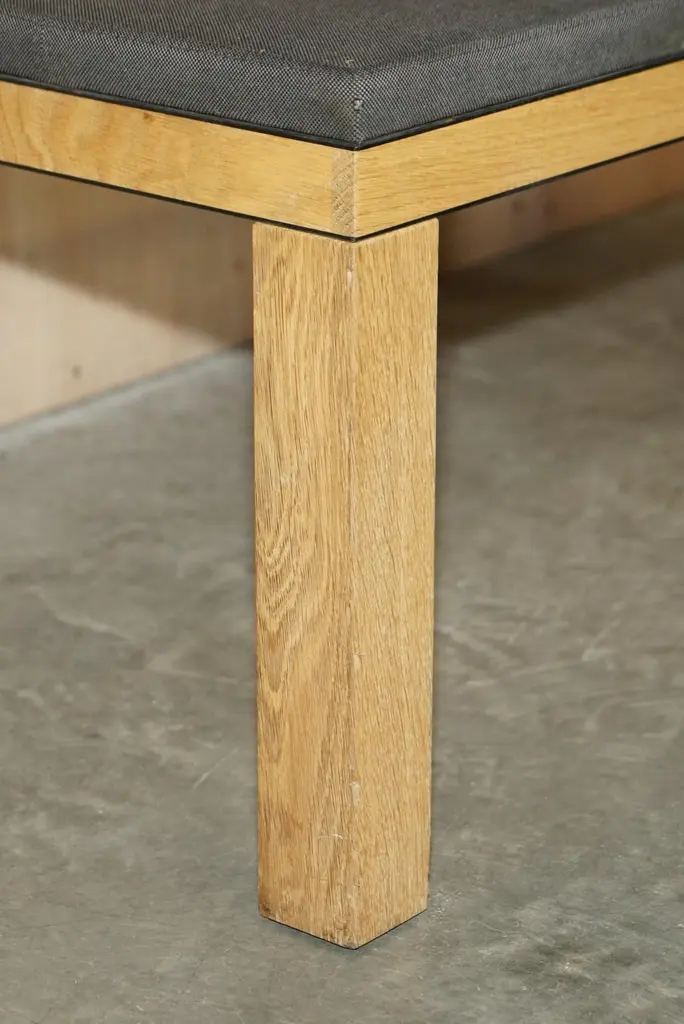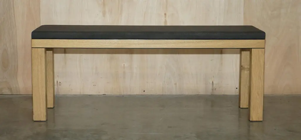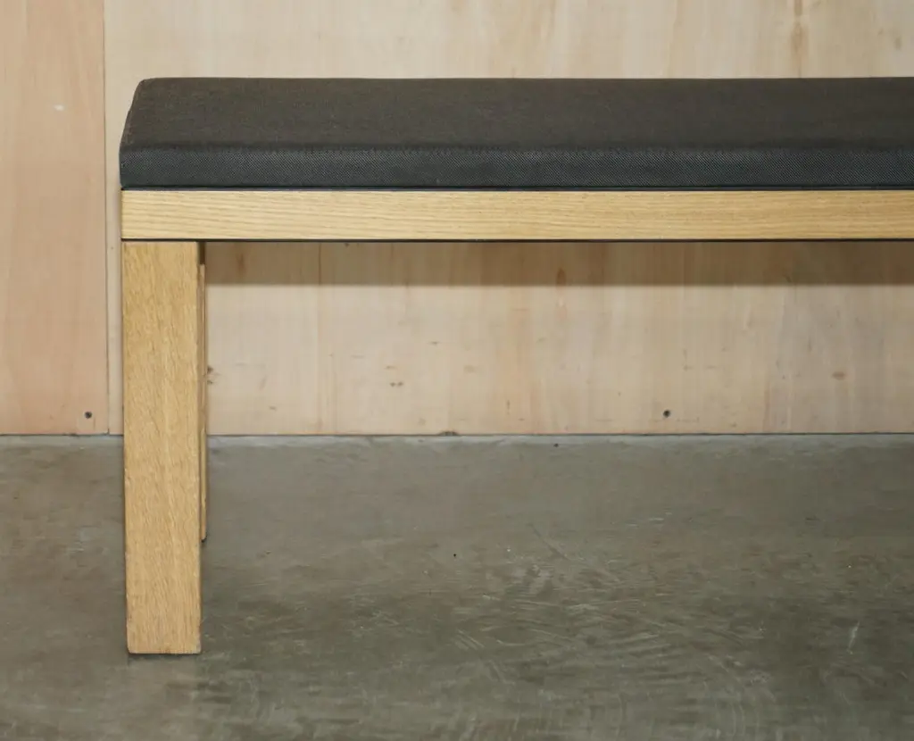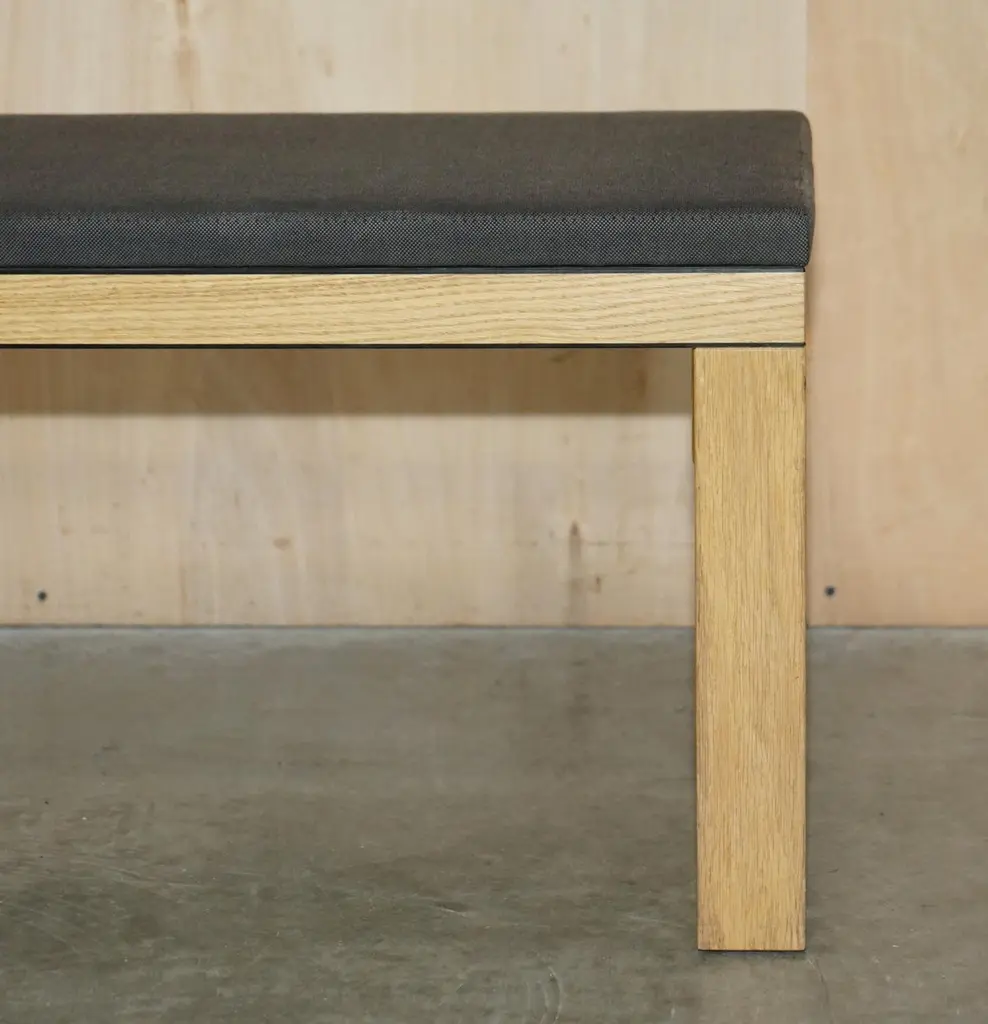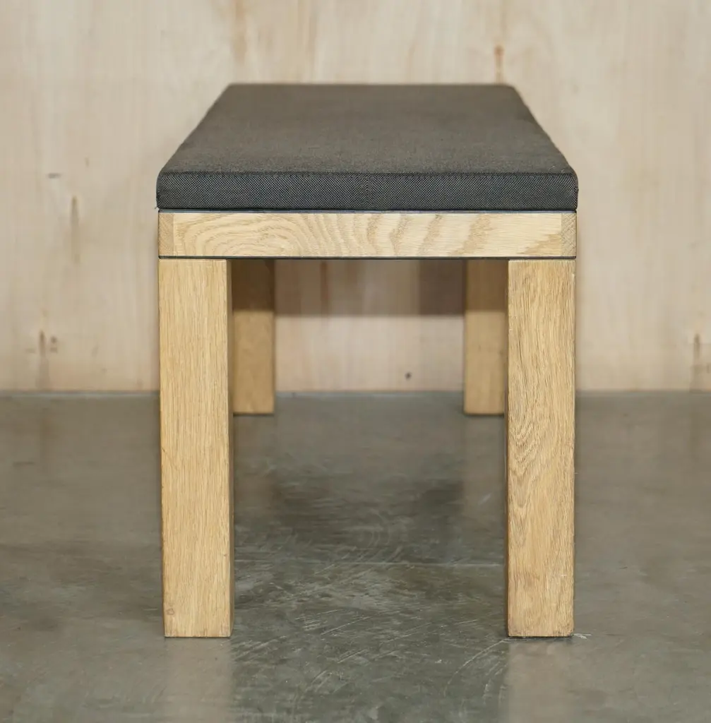 We are delighted to offer for sale this lovely hand made in England James Burleigh Bosa oak kitchen table bench which is part of a huge suite.I have 31 of these in stock, they come with light grey, dark grey and red upholstery, and in three sizes.In this dark grey colour I have eight of this size and eight exactly the same in light grey.This sale is for the bench mentioned alone, the others are all listed under my other items and not included in this sale. Some of them have the James Burleigh stamp on the inside of the leg, some don’t, all the upholstery has been professionally cleaned, its mostly mark free but there may be the odd bit of patina. The oak frames have all been cleaned waxed and polishedDimensionsHeight:- 44cmWidth:- 115.5cmDepth:- 39.5cmPlease note all measurements are taken at the widest point.This item is available for collection from our Pulborough warehouses.CONDITIONPlease view the very detailed pictures as they form part of the description pertaining to the condition. Please note vintage period and original items such as leather seating will always have natural patina in the form of creasing and wear, we recommend annual waxing to ensure no moisture is lost, also hand dyed leather is not recommended to sit in direct sunlight for prolonged periods of time as it will dry out and fade.