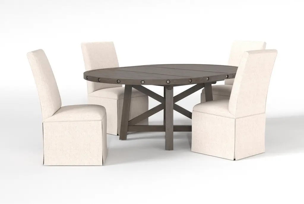 Jaxon Grey 54-75" Round Extendable Dining With Garten Linen Skirted Chair Set For 4