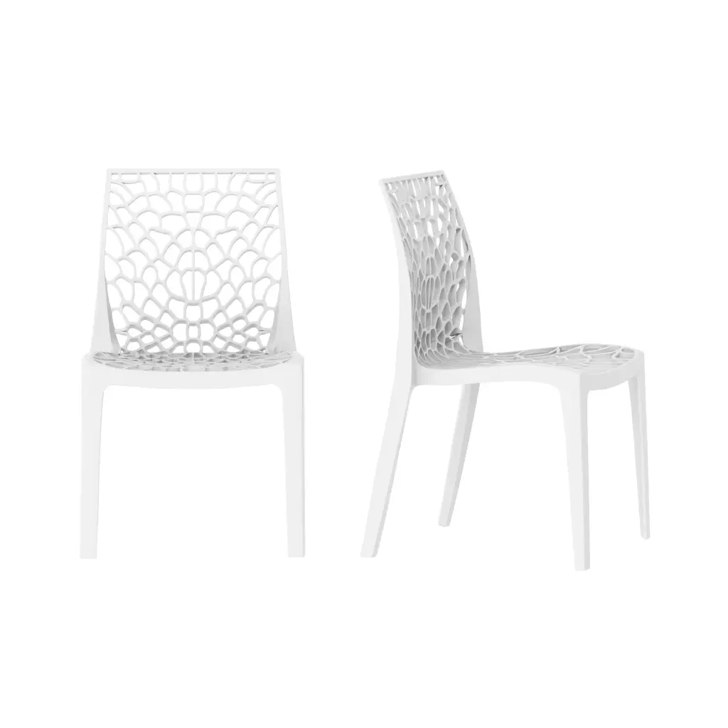 The Karissa Patio Chair features an interlaced web design that will be the talk of your sitting area. Creative, chic, and comfortable, these resin chairs will add pizazz to any area. Extremely durable and comfortable. These chairs are easy to stack and easily handle all weather.