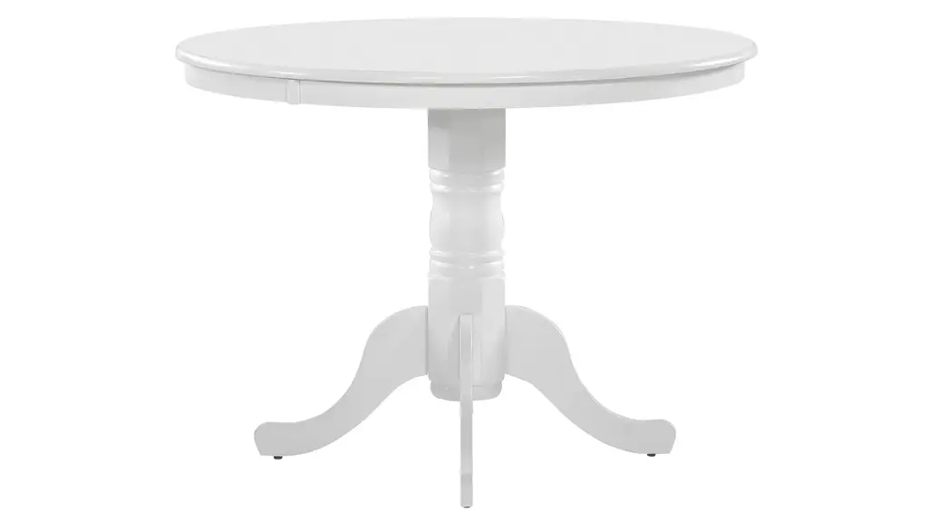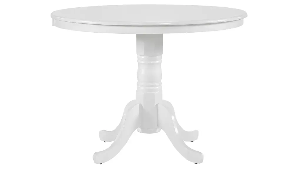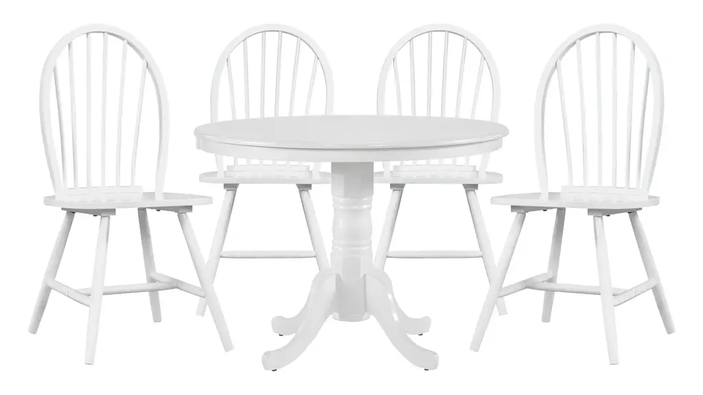 Kaydee 5-pc. Dining Set is traditional profile will complete the look you desire for your home. The traditional Windsor back chair that flanks the round tabletop, and pedestal base, lends a classic accent to the look of the collection, making it the perfect addition to your casual dining space. A white finish is utilized its hue a crisp palette perfect for your tabletop accessories.
