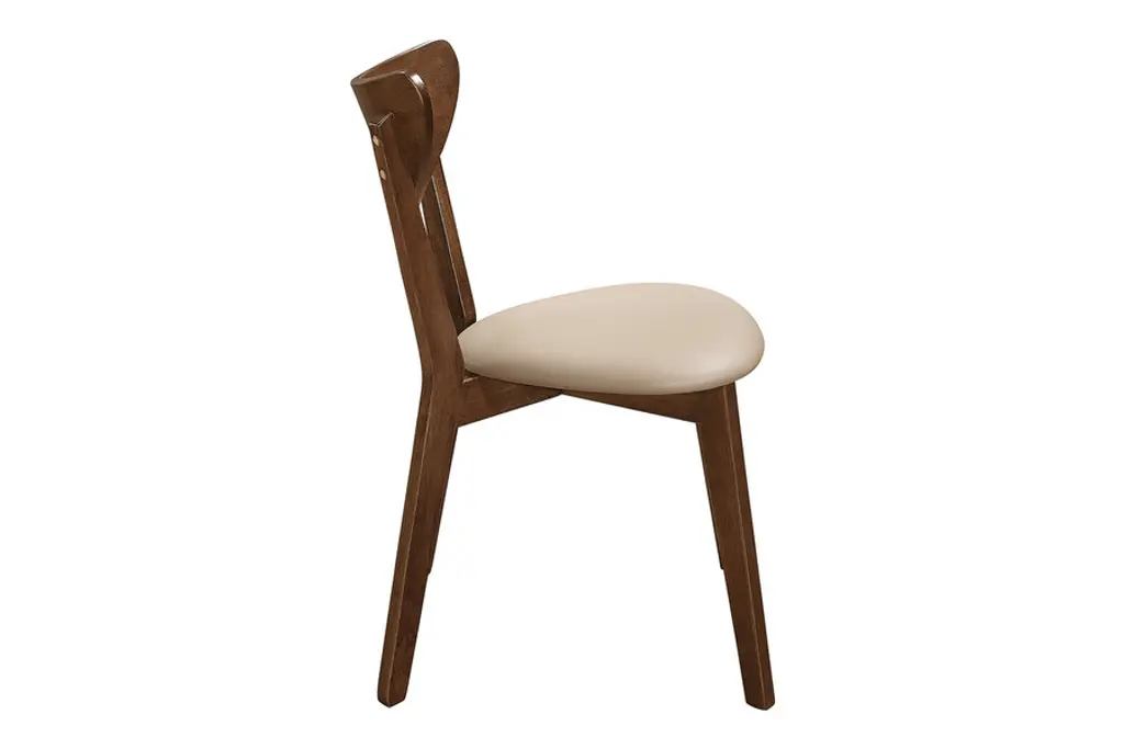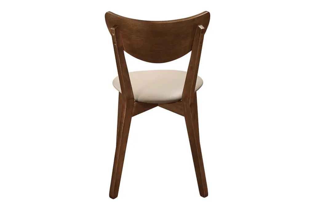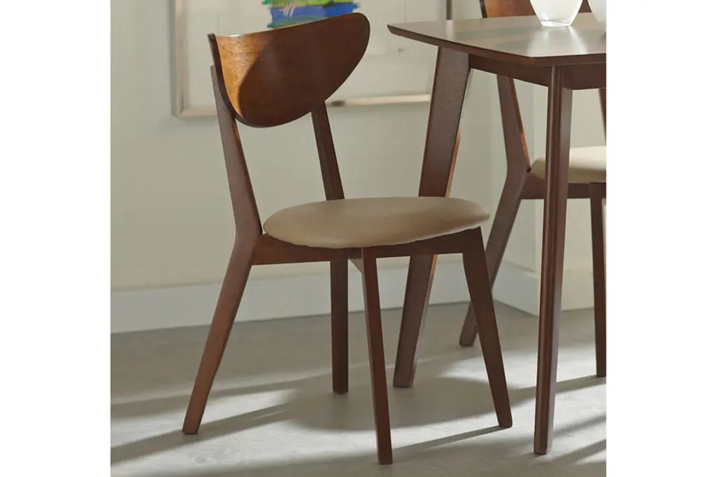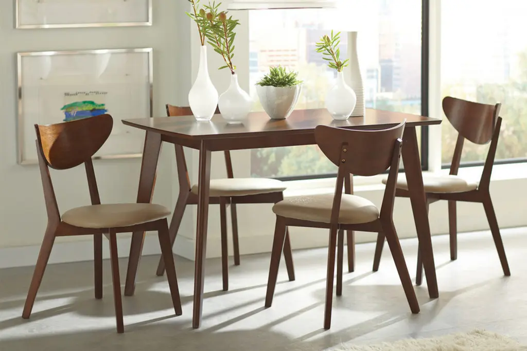 Enjoy your meals at this stylish and ultra contemporary dining set. Beautifully crafted of solid wood with a chestnut finish, the Kersey Collection Dana 5-Piece Dining set is built to last and ideal for everyday use. Chairs feature cushioned seats and contoured back rests to ensure this set is as comfortable and functional as it is visually appealing. The size of the table makes this collection ideal for moderately sized rooms.Dining Table: 47.25"w x 29.5"d x 30"h, 49 lbs Dining Chair(s): 20.25"w x 17.5"d x 31"h, 11 lbs