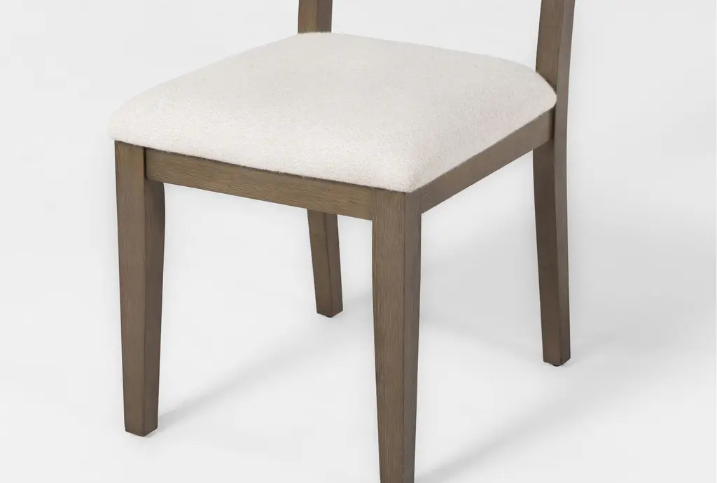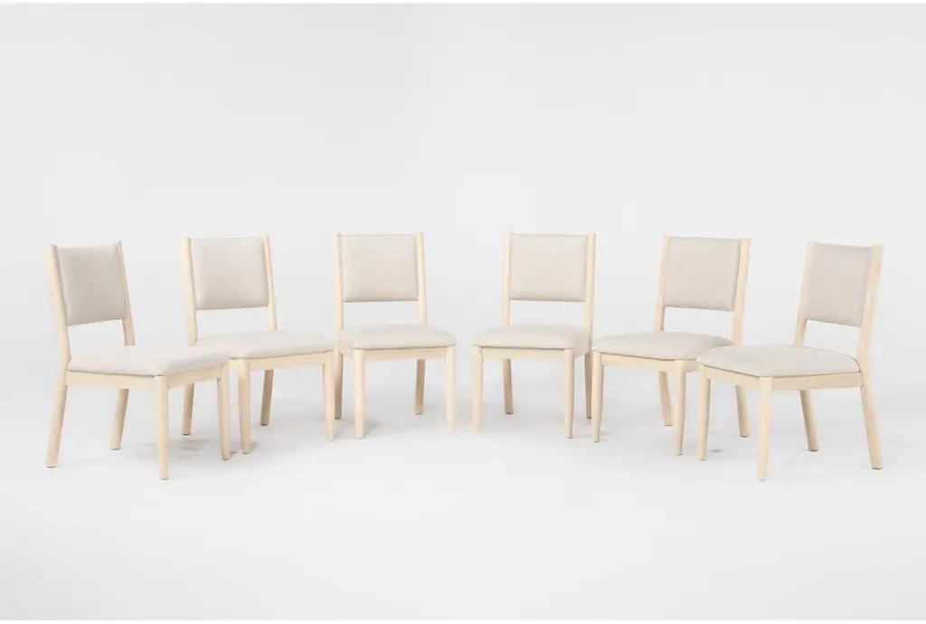 Lakeland Brown Wood Back Dining Chair Set Of 6 with Back offers approachable, comfort-forward seating for everyday dining with a tall, tight back and armless silhouette that keeps conversation and movement easy. The frame pairs rubberwood with ash accents, and the seats are upholstered in white fabric for a soft, neutral seat. Tapered legs and careful joinery support regular use, making this six-piece set a practical choice for a busy dining room or kitchen.