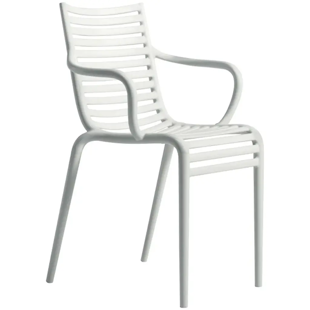 Elevate your outdoor space with the luxurious Lama Stacking Armchair (Set of 4) from Resol. Expertly designed by Josep Lluscà, this set of four armchairs reimagines a timeless classic. The metal slats add a touch of elegance while providing durability for generations to come. Indulge in the sophisticated and exclusive style of the Lama Armchair. Highlights