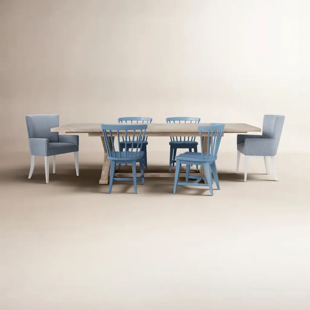 Gather, feast, and make memories with this effortlessly stylish Dining Set! The extendable trestle table, crafted from white-washed oak, pairs beautifully with four striped armchairs for a timeless yet fresh look. A woven water hyacinth bench adds a touch of natural texture, complete with a comfy, easy-to-clean cushion in a linen-feel fabric. Whether it’s a weeknight dinner or a special occasion, this set brings comfort, charm, and plenty of seating for all!