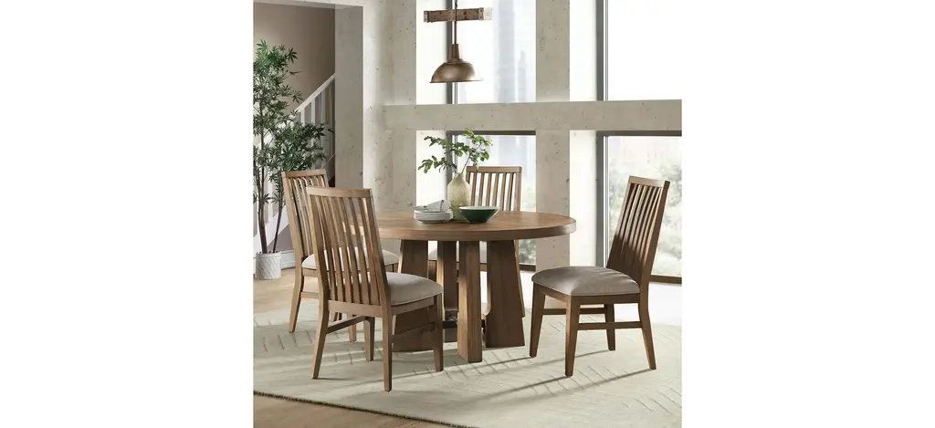 With its classic rustic design, beautiful wood grain, and slat-back seating, the Landmark 5-piece dining set creates an undeniably modern look.