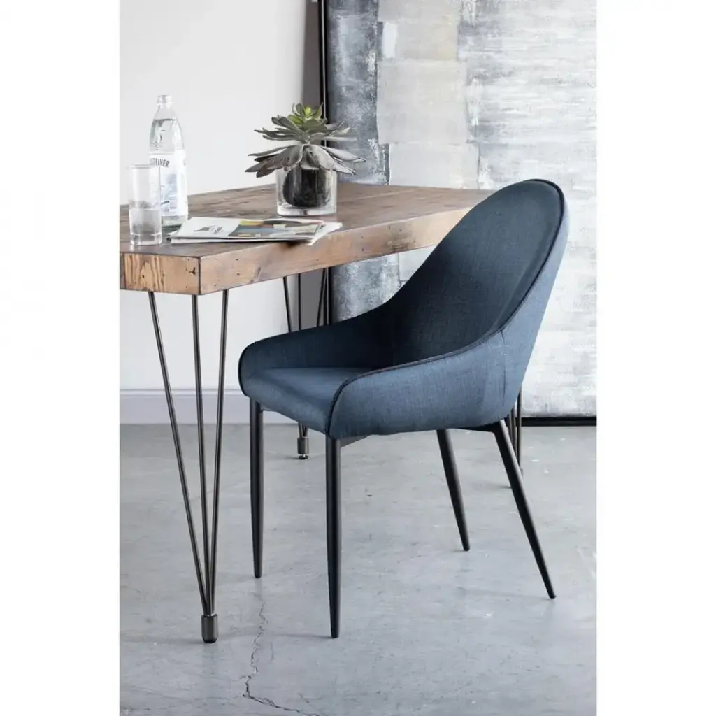 Resplendent in black and blue, it’s the Lapis dining chair. Lapis’ sculpted seat with low arms is the epitome of comfort, its foam-padded cushions blending beautifully with blue, easy-to-clean polyester upholstery. Tapered black legs add a good dose of elegance to this chair, making sure you’ll be seated in style for all your soirees.