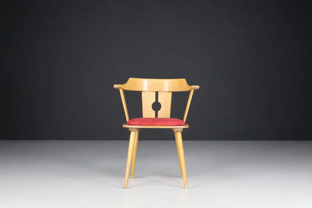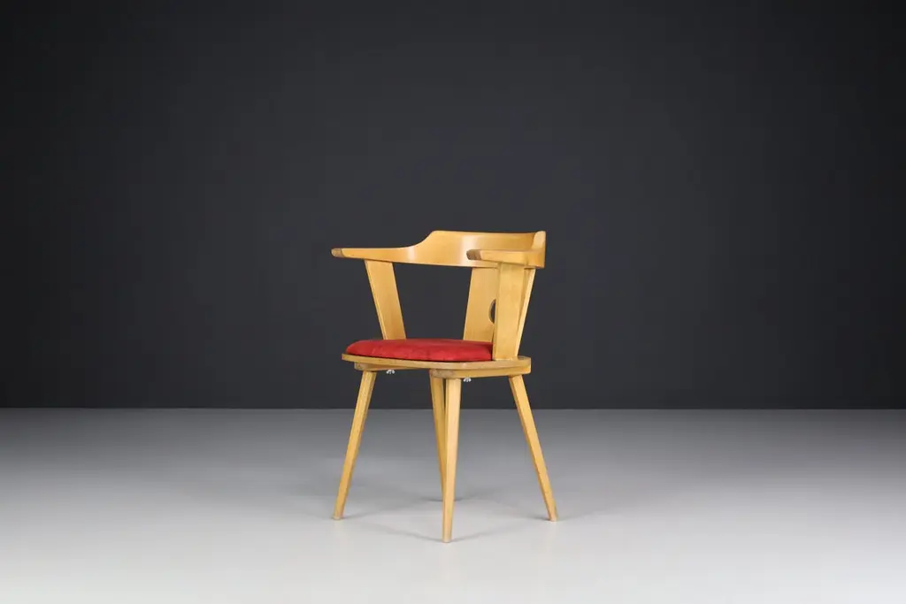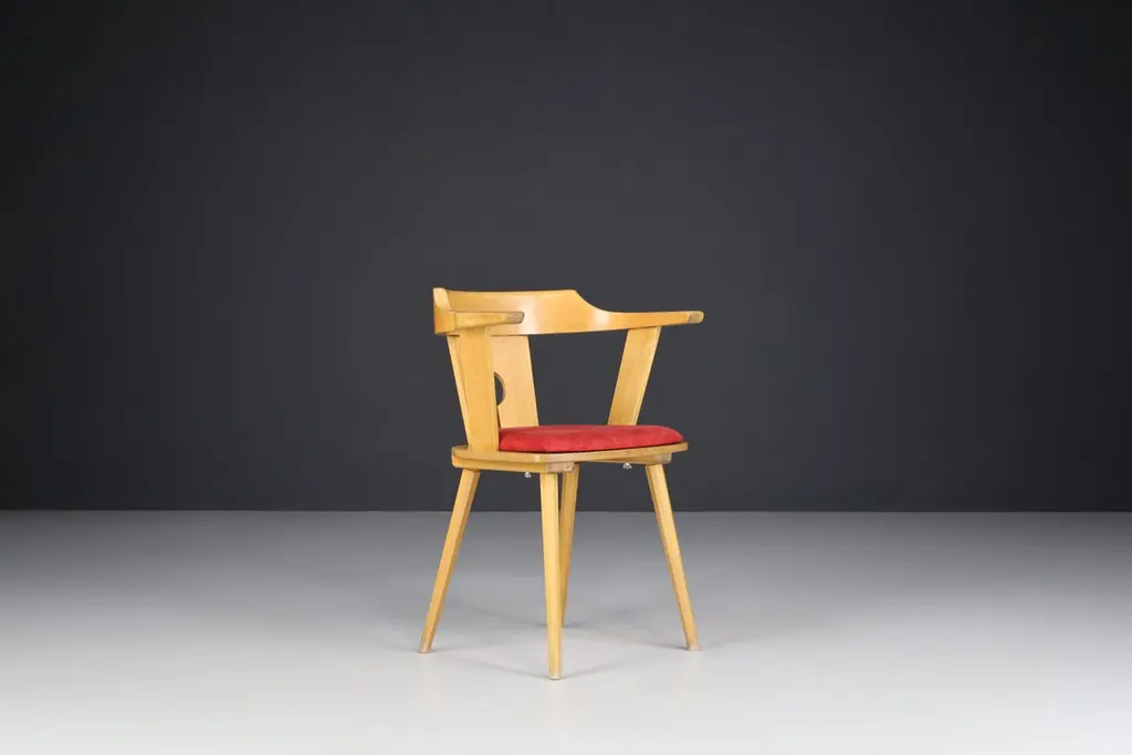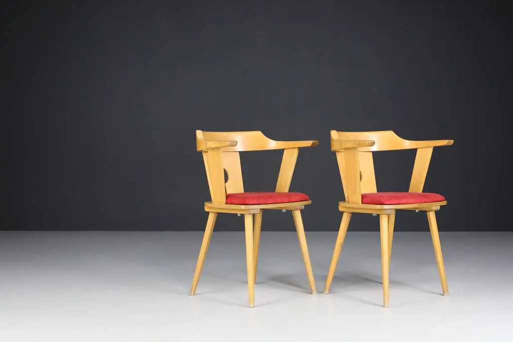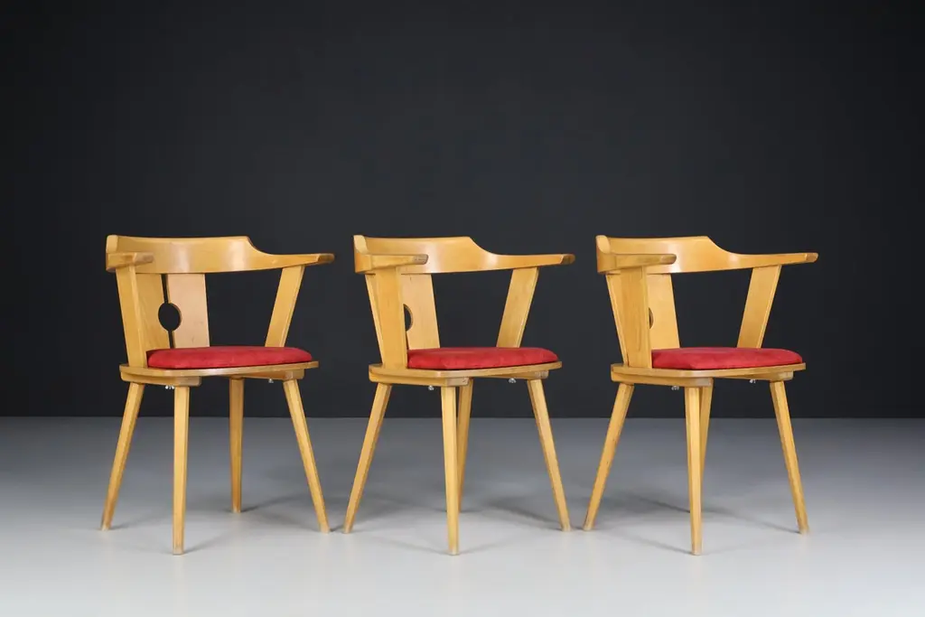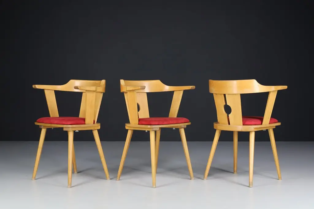 Large set of 12 dining chairs in beech and original upholstery, France 1960s Characteristic set of 12 French dining chairs in beech wood and original fabric. The elegant designed open shape and tapered wooden legs complement these chairs and the frame in combination with the upholstery makes this chair very versatile for any type of interior. The design looks simplistic, yet these chairs were made with high attention and great craftsmanship.Please note that these chairs show signs of age and use. Reupholstery is possible before shipping by our experienced craftsman in our own in-house restoration atelier. With high attention for the original, they make sure every piece retains its value and is ready for the many years to come.