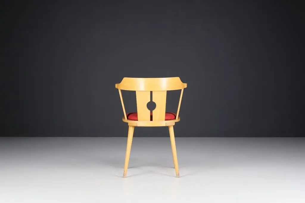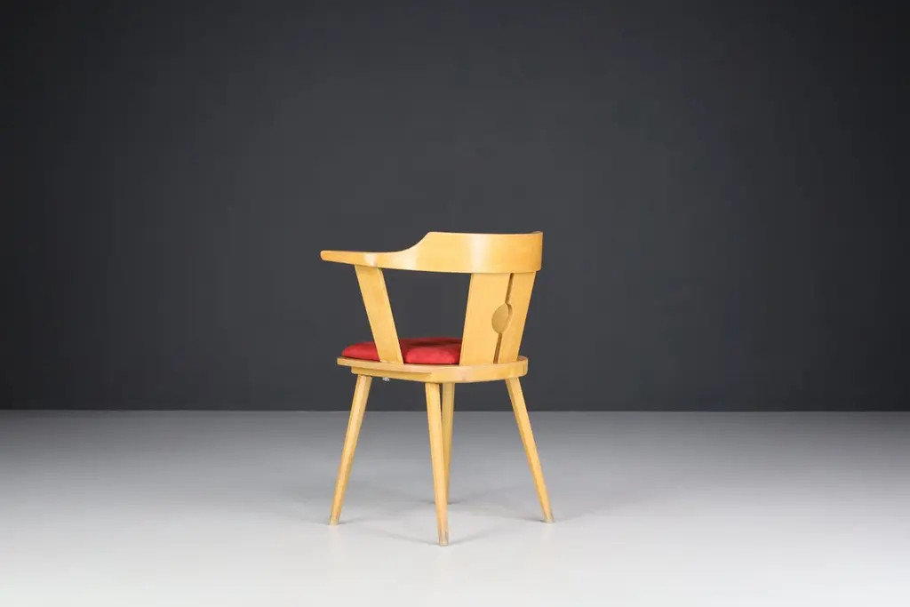 Large Set/12 Of Dining Arm Chairs In Beech And Original Upholstery, France 1960s