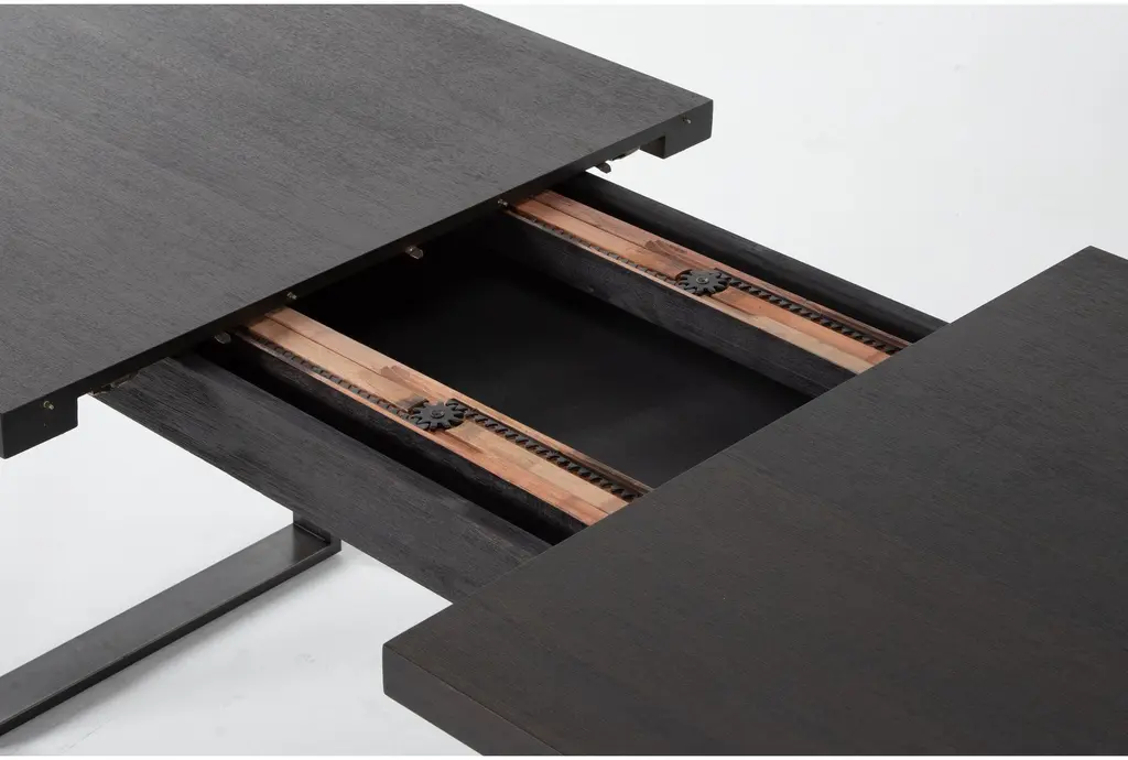 Discover a compelling marriage of materials in our Lars dining collection, which showcases the combination of metal, wood and fabric in all its glory. Designed and developed by Living Spaces, these streamlined designs feature sleek steel with solid wood and acacia veneers to create a dark and handsome look that will enrich your space. Whether you want to lean more rustic or industrial in style, these pieces will play the role to perfection. The table boasts an 18” extension leaf that allows more guests to gather.