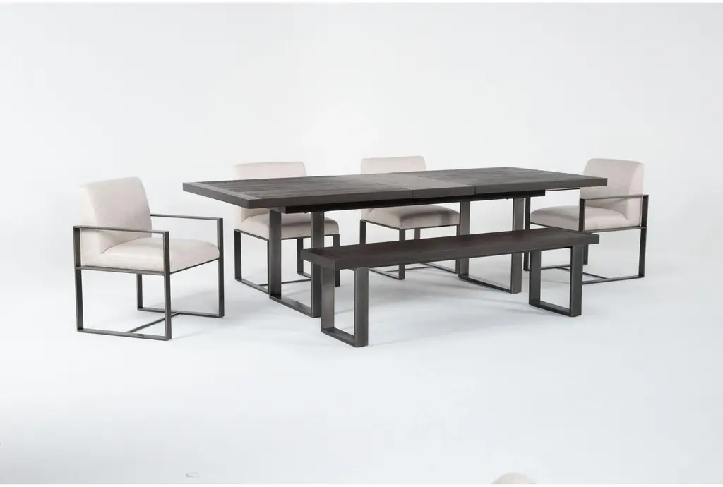 Lars Ii Black Wood + Metal 84-102" Extendable Dining With Bench Side + Armchair Set For 6