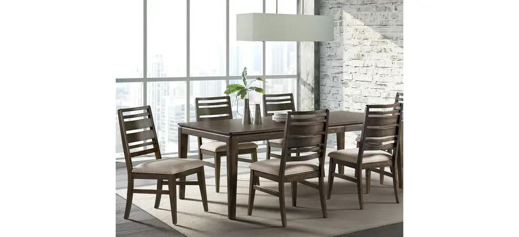 Simple in its presentation, but thoughtful in its subtle details, the Magna 7-pc. Dining Set is a classy addition to any dining room. With the brushed mango wood finish, with rich gray undertones it will match any dcor. Extended the table with the 18 self-storing leaf for those family gatherings.