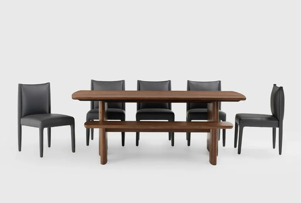 The Mariko Natural Rectangular Wood Extendable Dining Table with Faux Leather Bench and Arm Chair Set for 6 is a perfect addition to your dining room or kitchen. Designed by The Essentials, this modern dining set combines functionality and style, offering a warm wheaten color that complements any decor. The table extends to accommodate extra guests, while the faux leather bench and armchairs provide comfortable seating for everyone.
