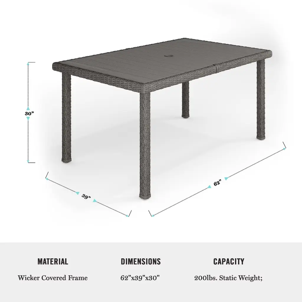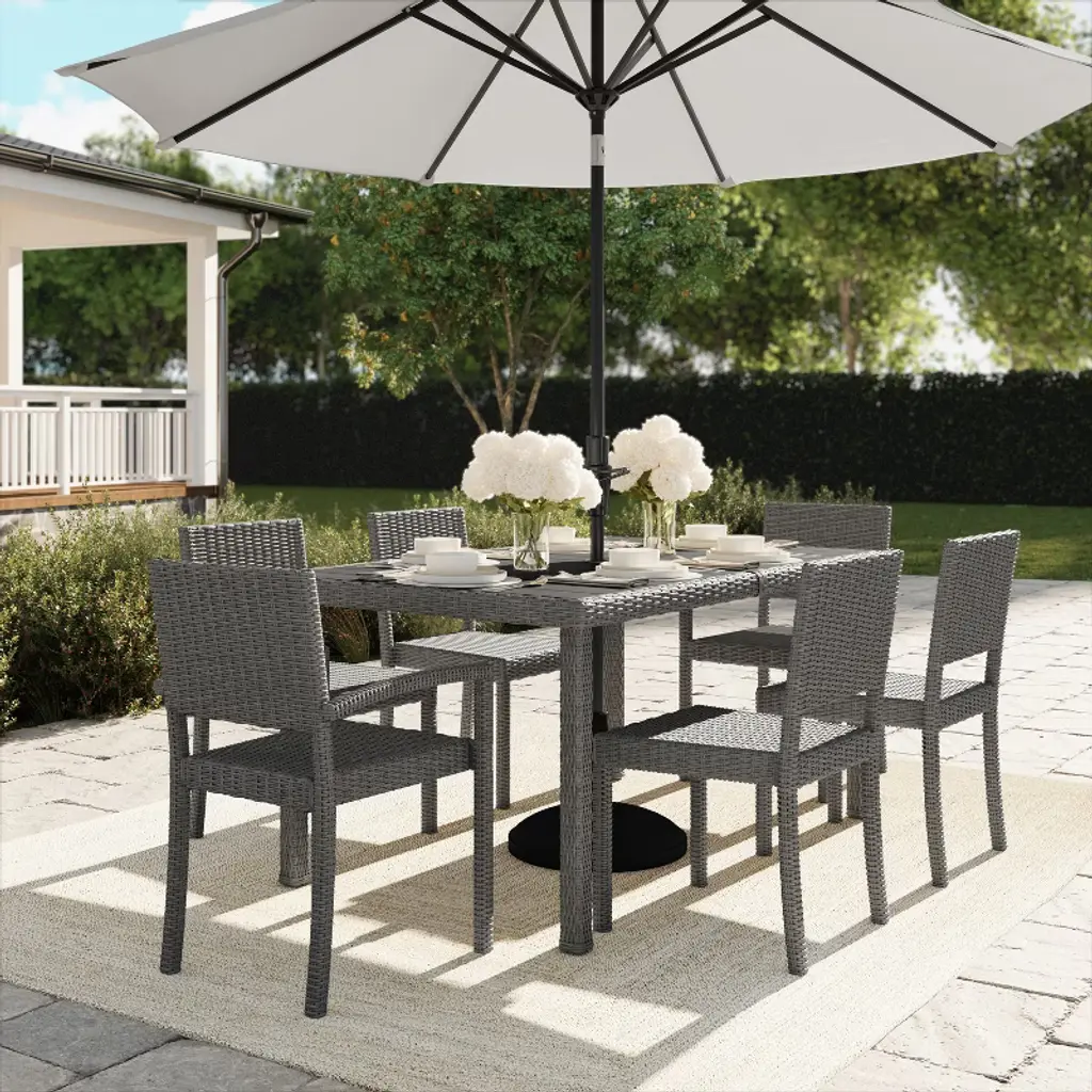 Martha Stewart 7Pc Outdoor Rattan Wicker Patio Dining Set With 6 Chairs And 62" Table - Gray