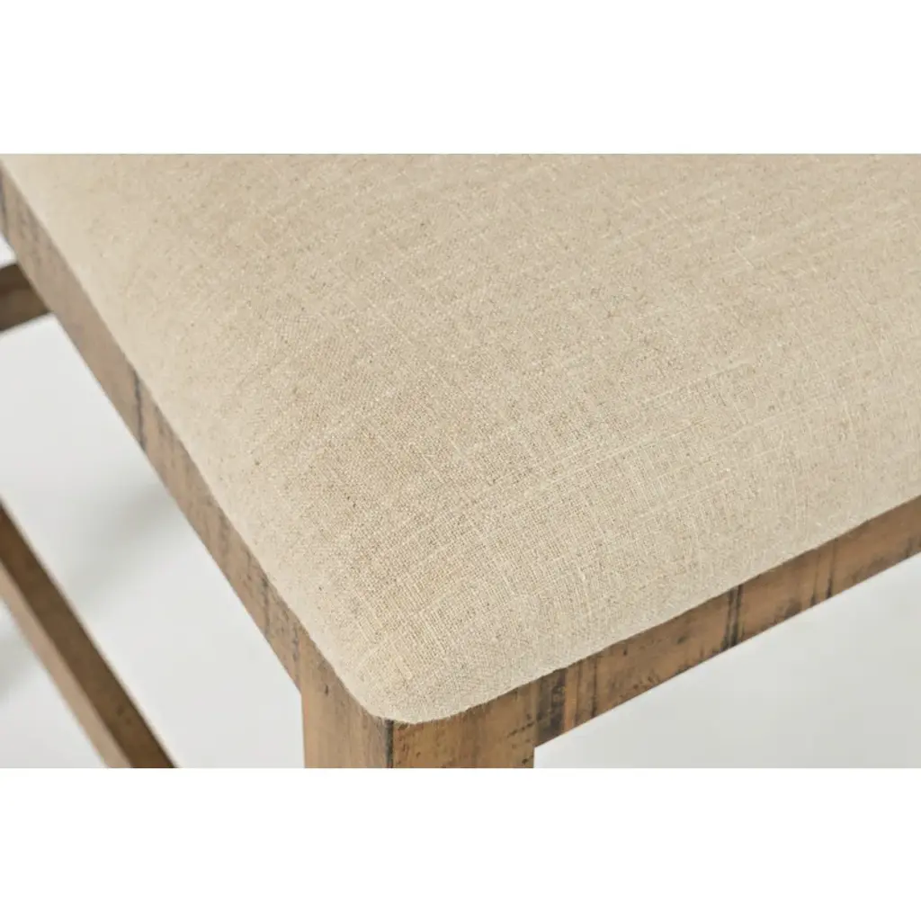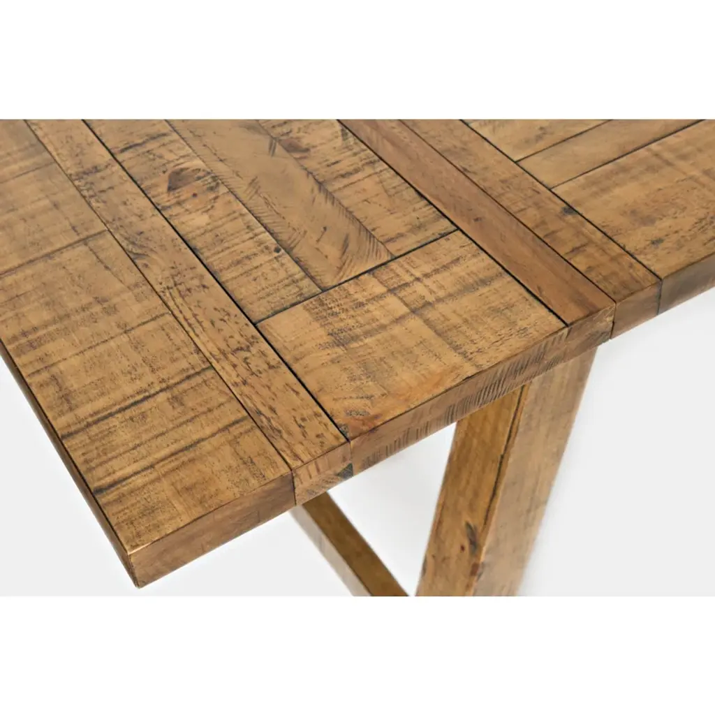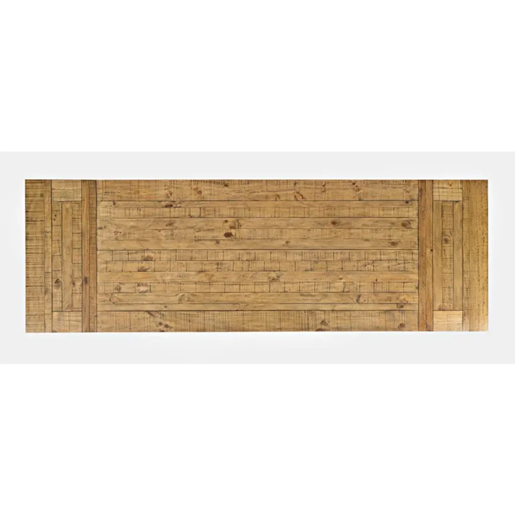 The set is the essence of style with solid pine handcrafted into spectacular furniture perfect for any room in your home. Each piece is unique with subtle distressing that brings out the beauty of the natural wood. The dining table is truly an incredible display of style and includes two removable extensions. Experience the look and feel of solid full-grain pine that has been crafted with the utmost care. This set includes X-back dining chairs with soft upholstered fabric.