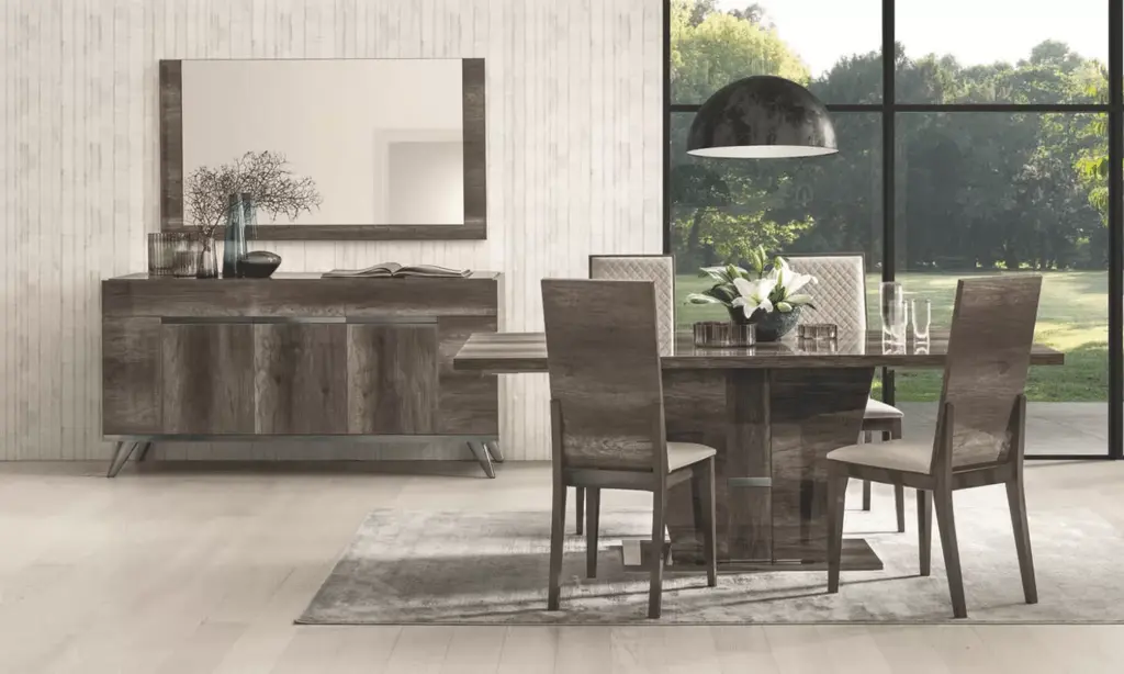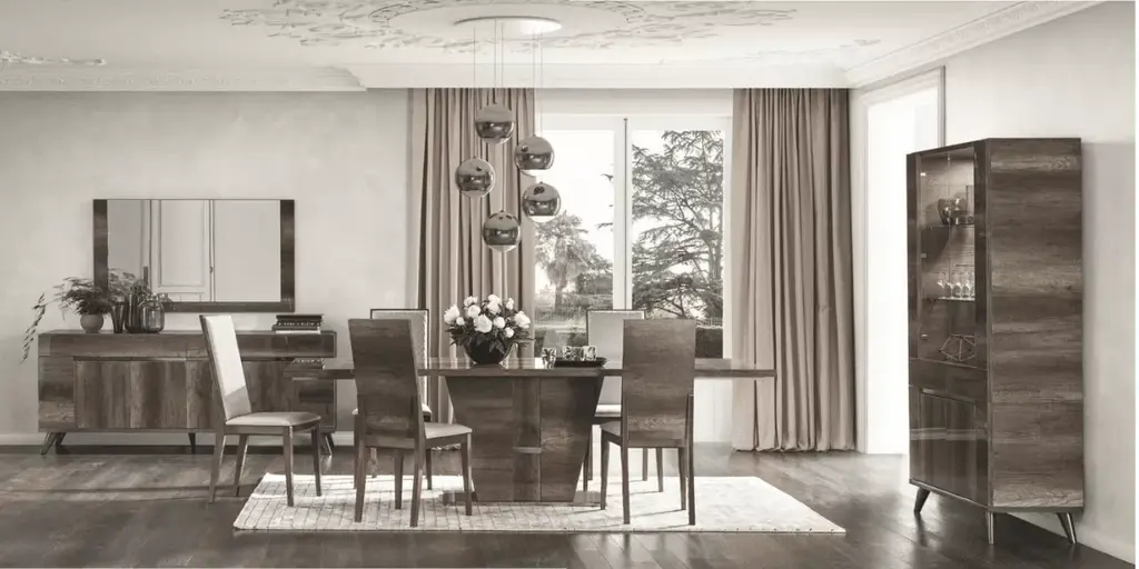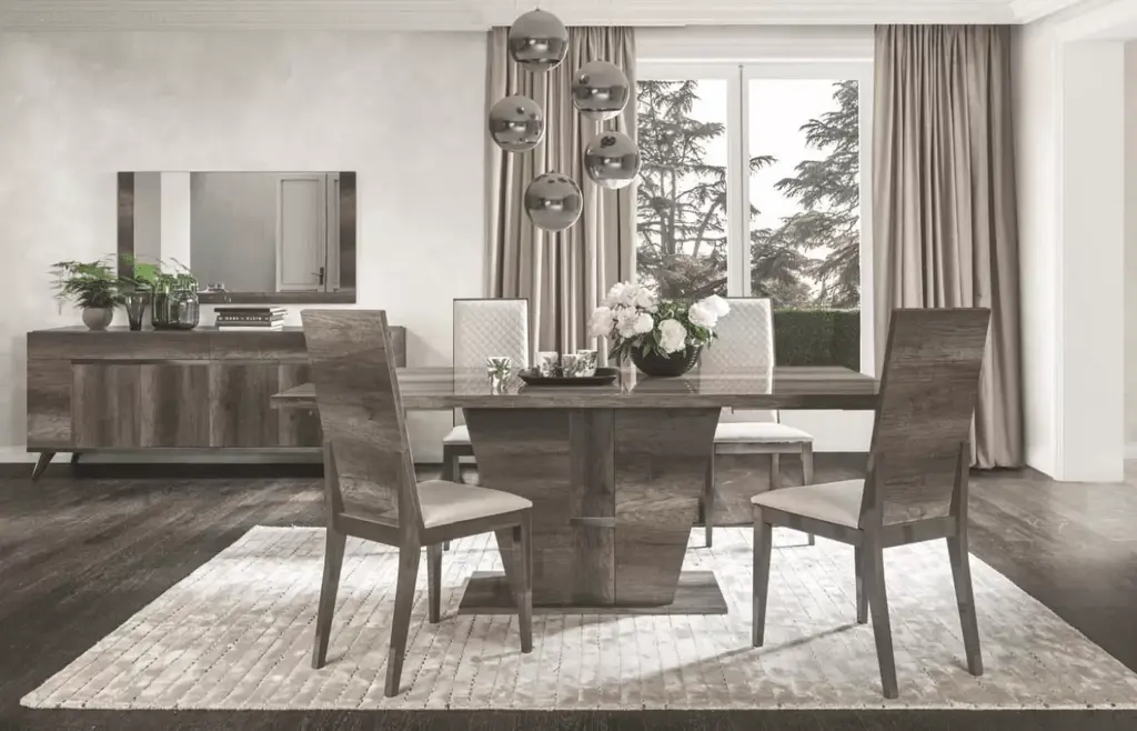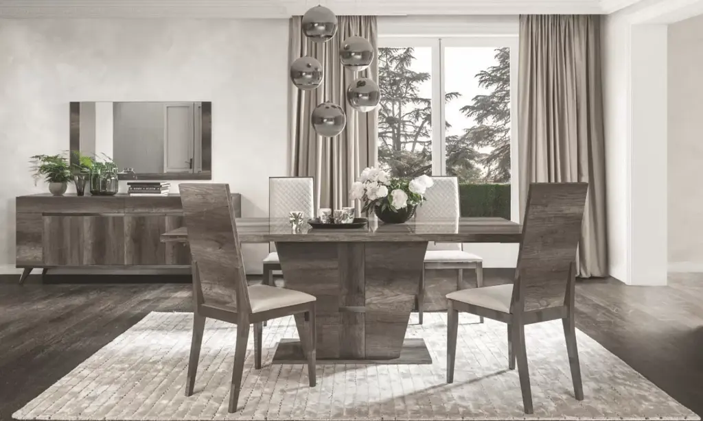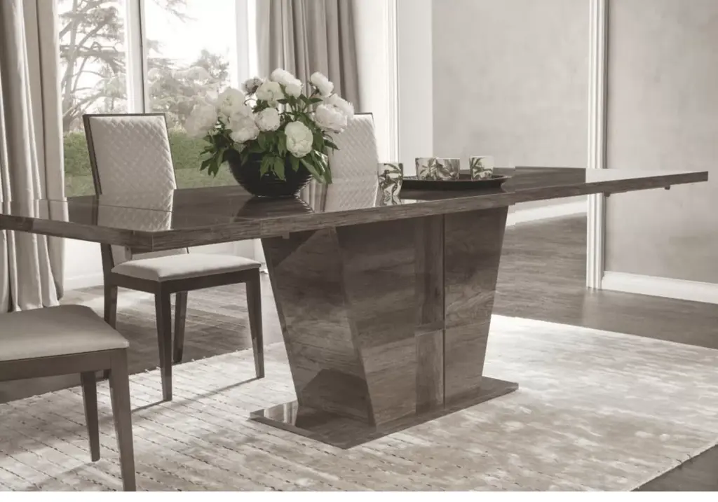 The Elegant Modern Dining Table Set by Status, is a sophisticated and elegant furniture ensemble designed to elevate your dining experience. This dining set showcases a blend of contemporary design elements with Italian craftsmanship, resulting in a stunning and stylish addition to your dining room.The centerpiece of the set is the Medea dining table, which serves as the focal point of the room. It features a sleek and minimalist design, characterized by clean lines and a smooth surface. The table is crafted from high-quality materials, ensuring durability and stability. The tabletop is spacious enough to comfortably accommodate a large number of guests, making it ideal for both everyday meals and special occasions.The dining table is accompanied by a set of matching chairs, designed to complement its aesthetic. The chairs feature ergonomic design and are upholstered in premium-quality fabric or leather, providing both comfort and style. The chairs are crafted with attention to detail, ensuring a seamless integration with the overall design of the dining set.The Medea Modern Italian Dining Table Set is designed with versatility in mind. It can effortlessly blend with various interior design styles, ranging from modern and contemporary to classic and transitional. This adaptability makes it a perfect choice for homeowners who value timeless elegance and want their dining area to be a reflection of their refined taste.The attention to detail in the craftsmanship of the Medea Dining Table Set is evident in its fine finishes and meticulous construction. The use of high-quality materials and the precision in its design ensure a long-lasting and durable dining set that will withstand regular use and retain its beauty over time.Whether you are hosting a formal dinner party or enjoying a casual family meal, the Medea Modern Italian Dining Table Set by Status provides a luxurious and inviting space for you and your guests to dine and create cherished memories. W : 104 cm H : 76 cm L : 200+58 (2×29) cm W : 104 cm H : 76 cm Shop All Status Catalogs Furniture by Catalog