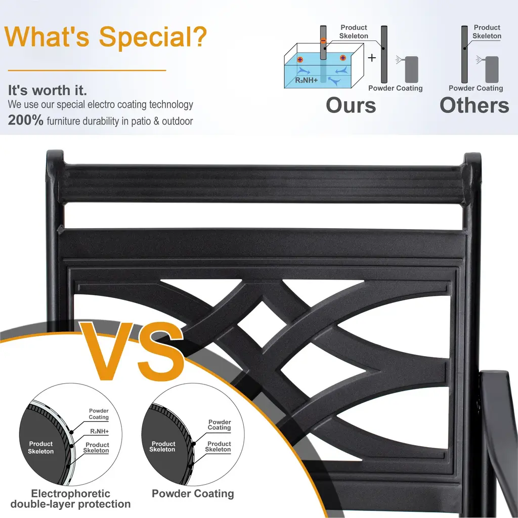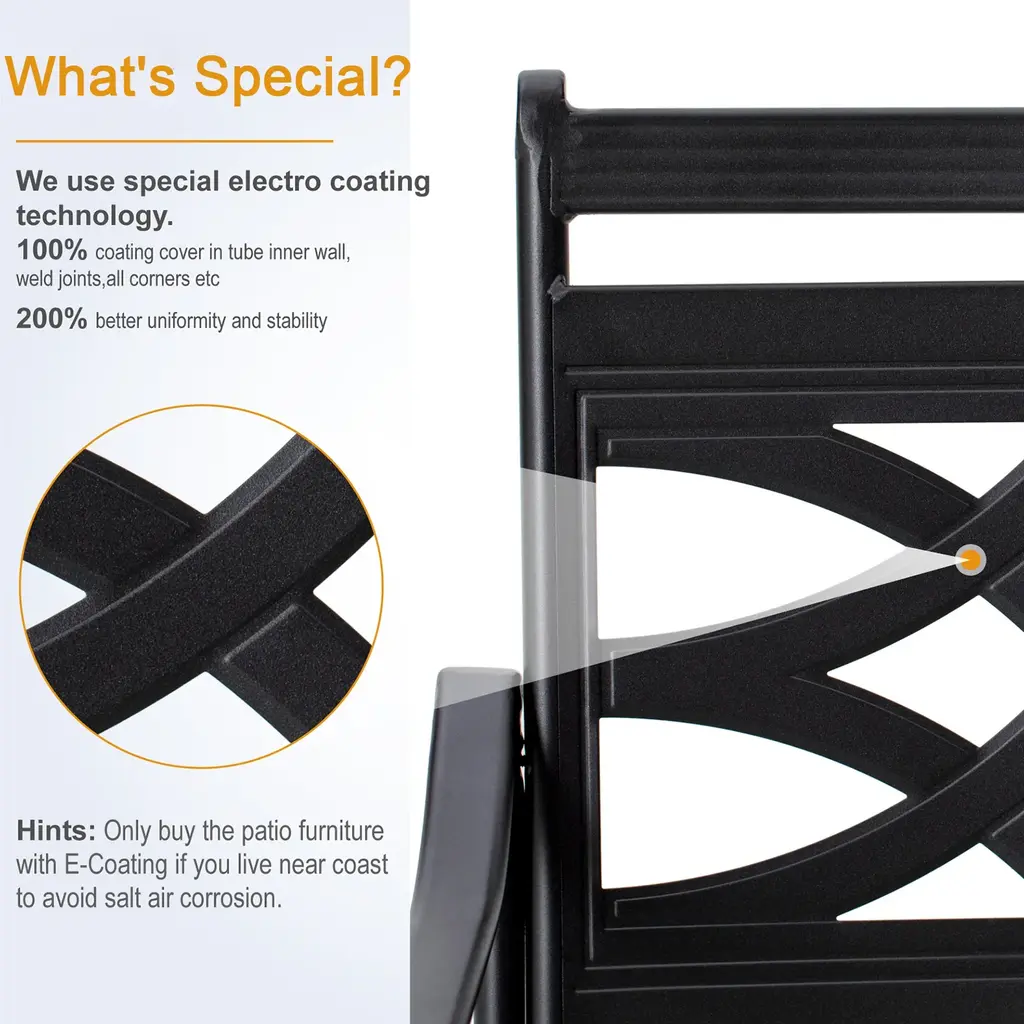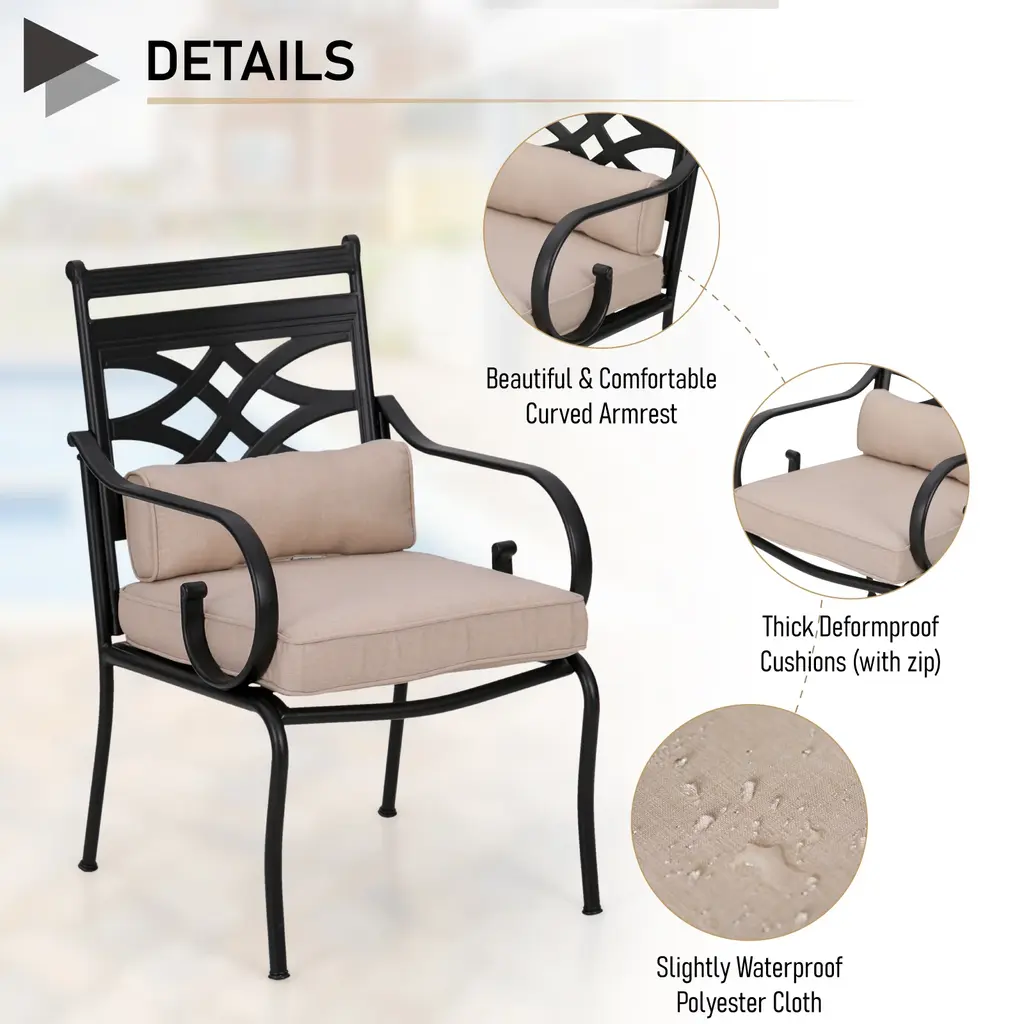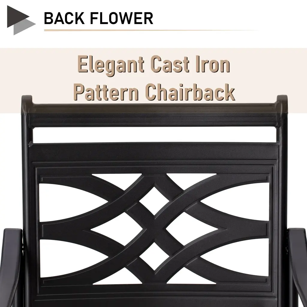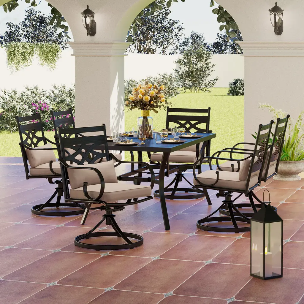 Mfstudio 7-Piece Outdoor Dining Set Steel Panel Table & Elegant Cast Iron Pattern Dining Chairs