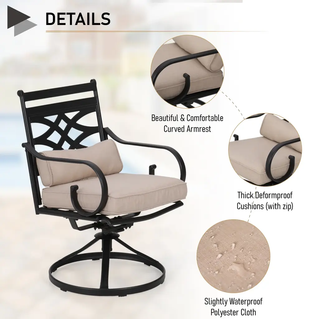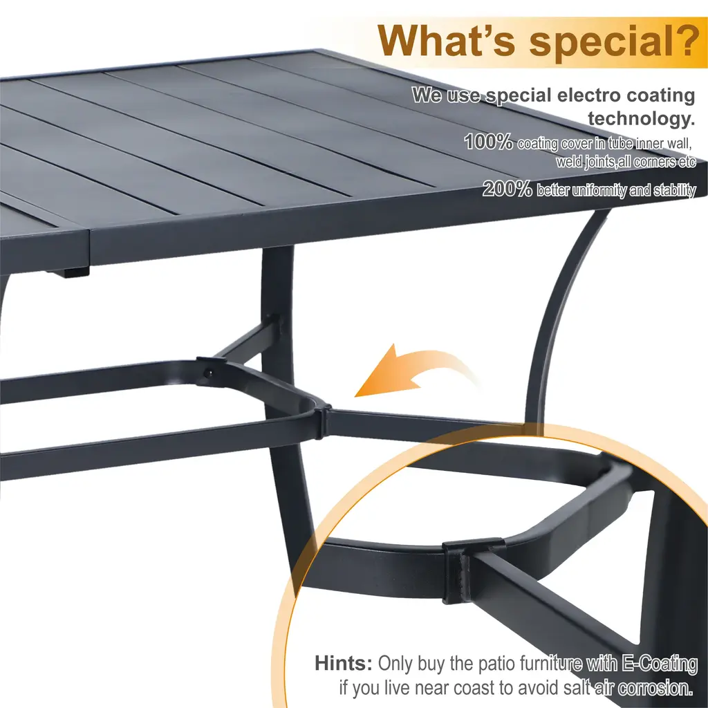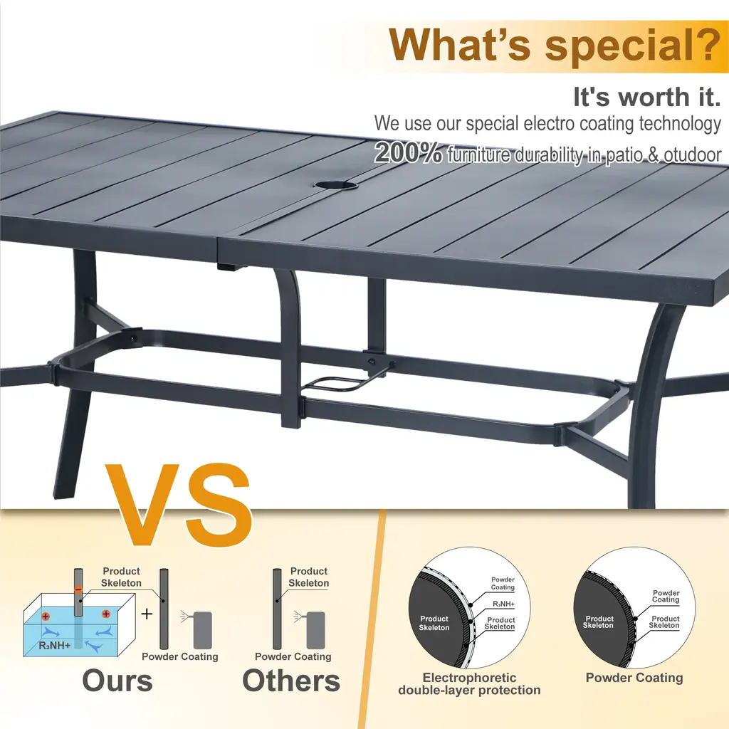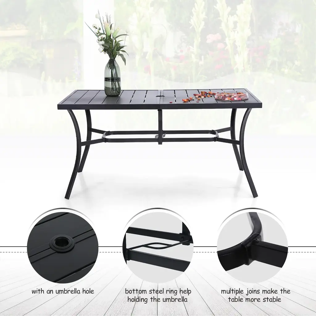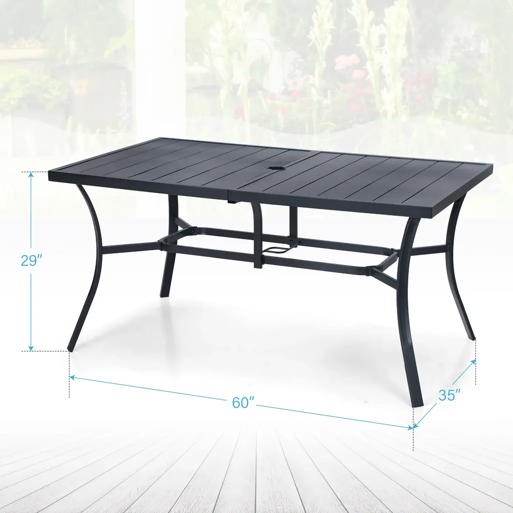 Mfstudio 7-Piece Outdoor Dining Set Steel Panel Table & Elegant Cast Iron Pattern Dining Chairs