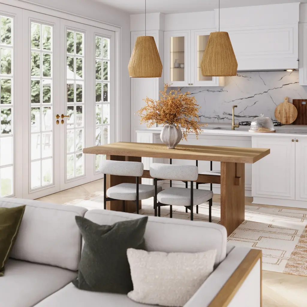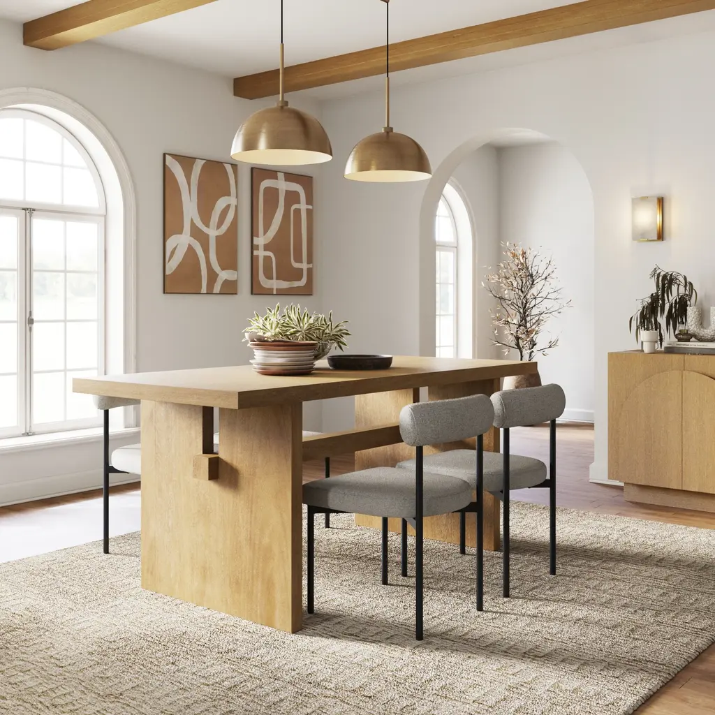 Introducing our latest dining set: the perfect blend of style and function for your home! The Briggs dining table features a durable, thick-panel construction topped with a beautifully veneered surface—each table is unique with its own variations in color and texture. Paired with the Dahlia dining chairs, you'll enjoy mid-century inspired wire frames, curved backs, and cushioned seats that make every meal a pleasure. Plus, with easy assembly, you’ll be hosting in no time. Make your dining area a warm and welcoming space with this charming set! Dining set includes 1 dining table and 4 chairs.