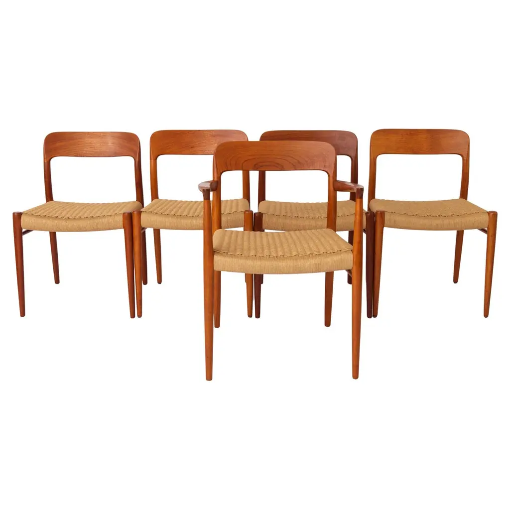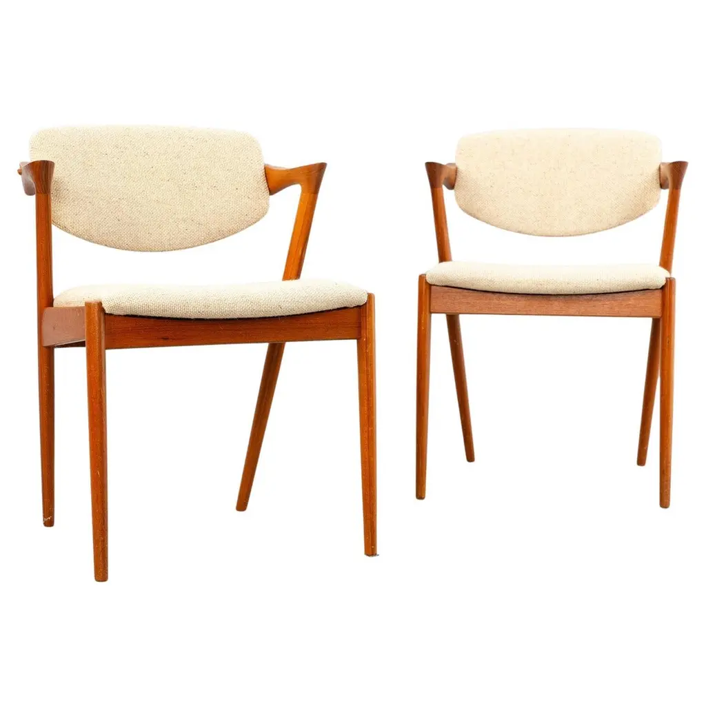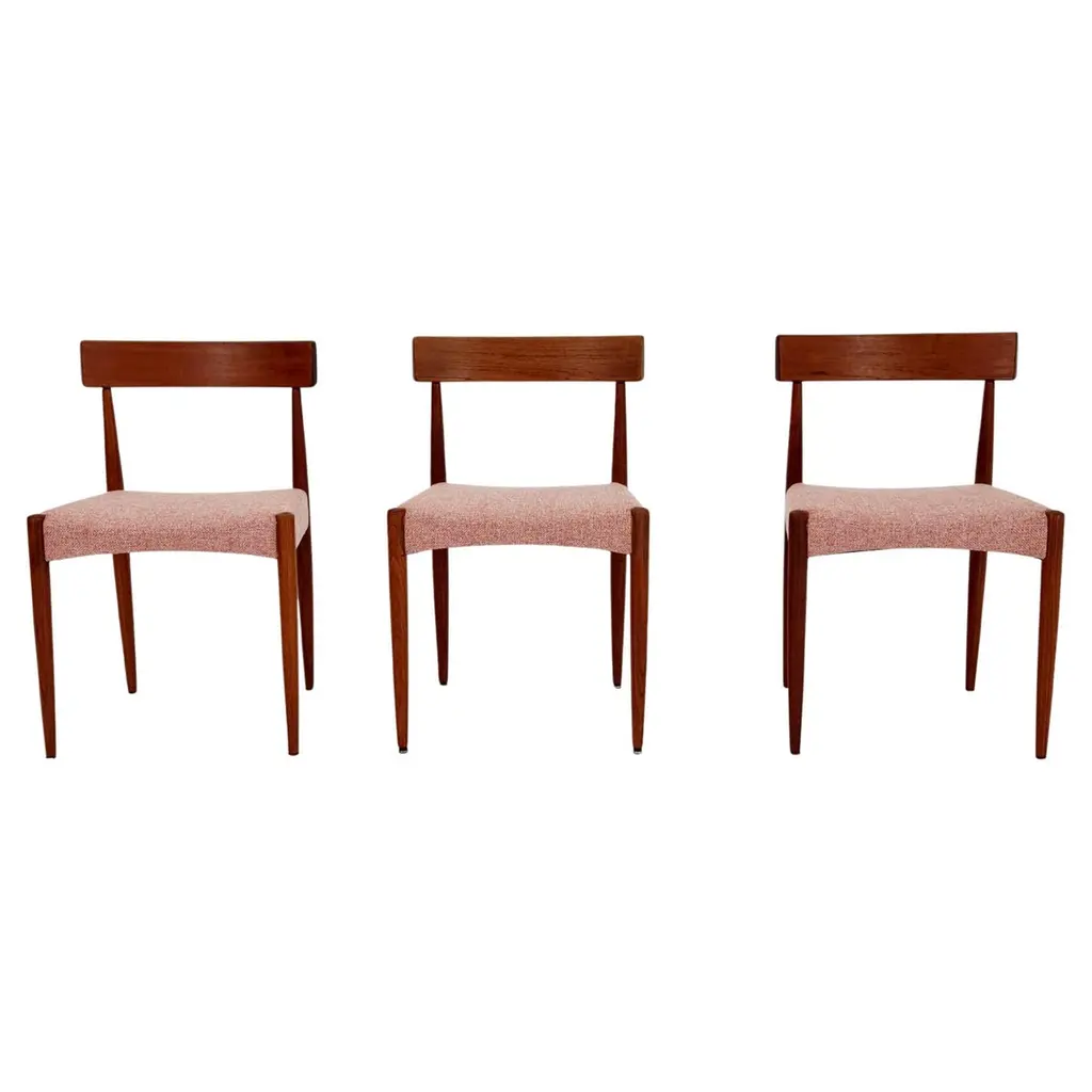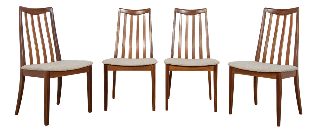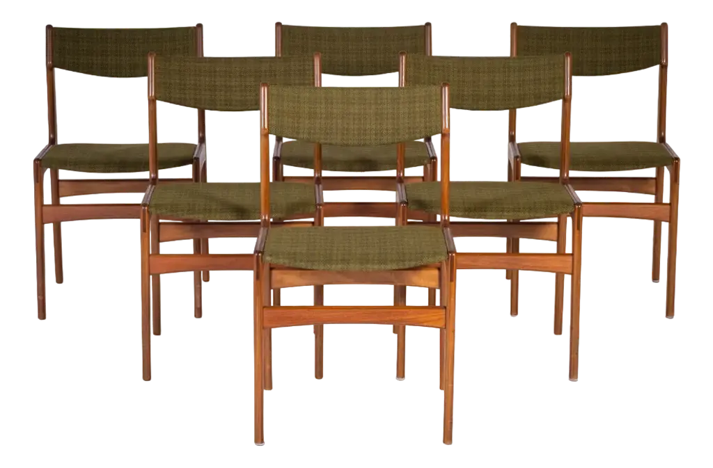 This set of four dining room chairs model 49 in teak was designed by Erik Buch and made by Odense Mobelfabrik in the 1960s. Chairs after a comprehensive carpentry and upholstery renovation. The upholstery interior has been replaced and covered with grey fabric. The teak frame has been cleaned from the old surface and finished with quality Danish oil. I have official proof of authenticity such as vintage catalogs, designer records, or other literature sources and take full responsibility for any authenticity issues arising from misattribution