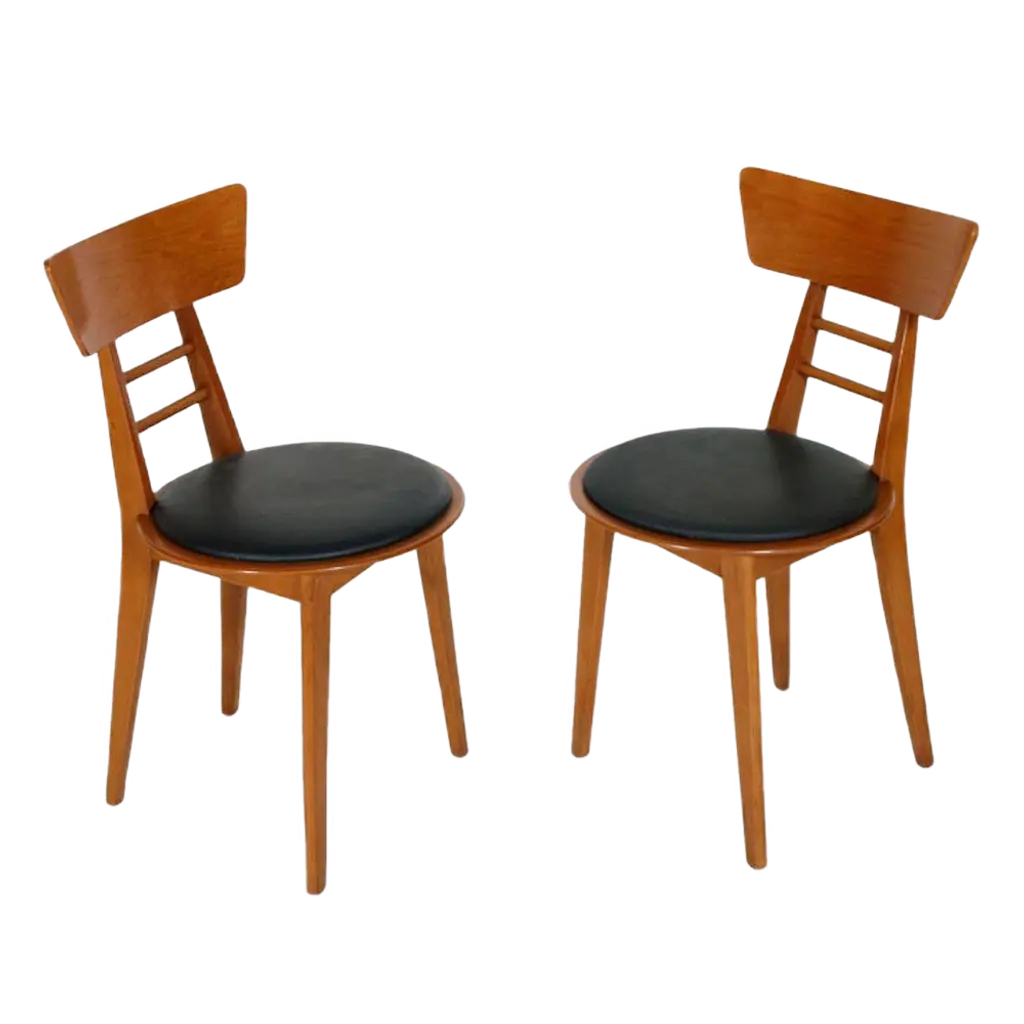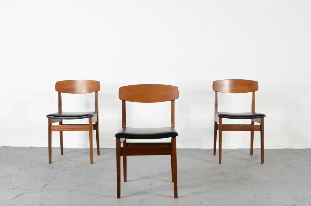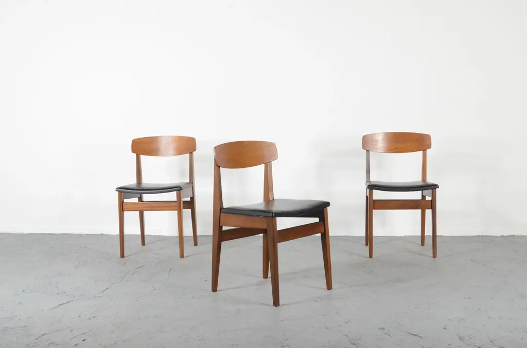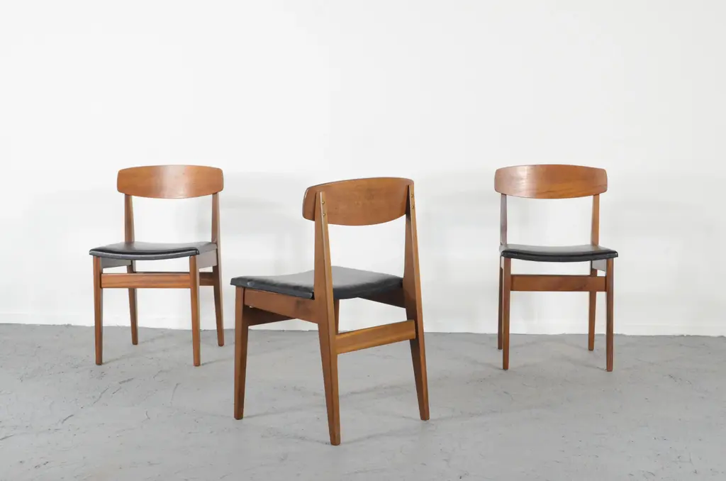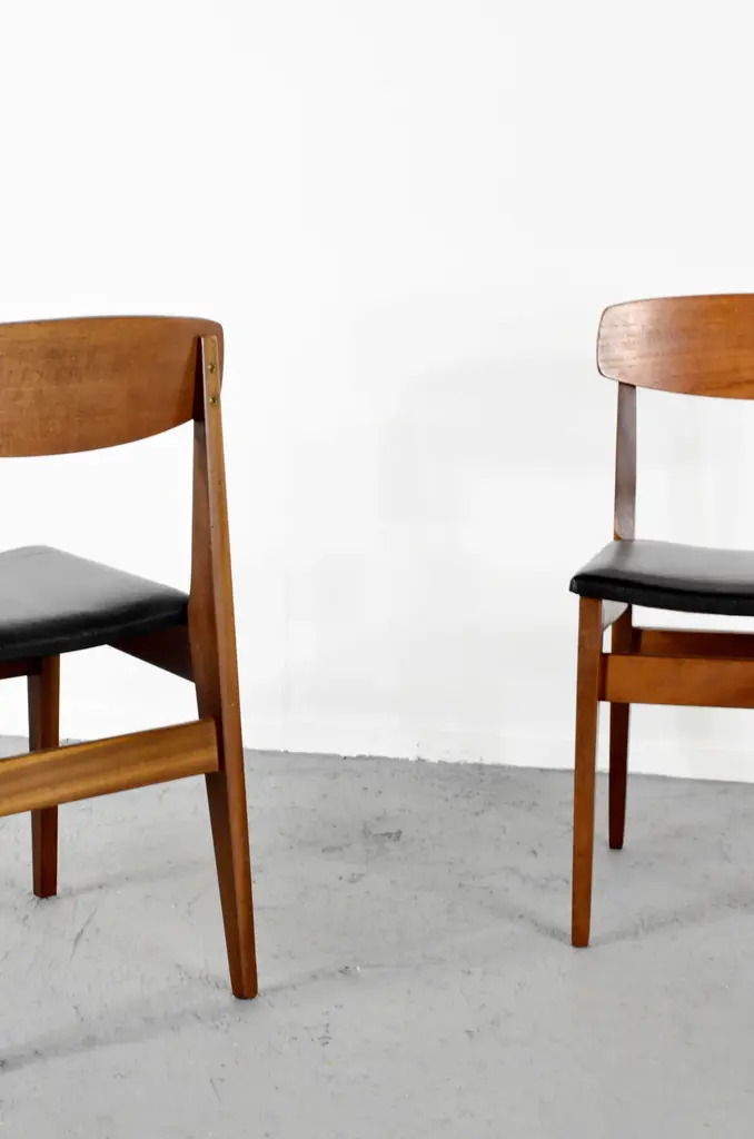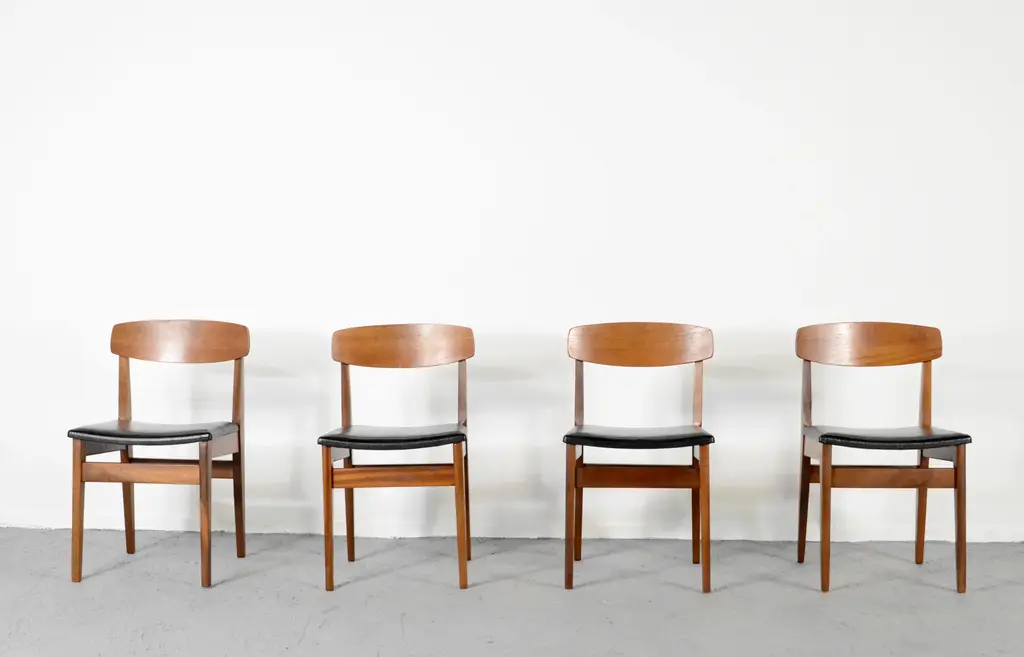 Mid-Century Modern Teak and Leatherette Dining Chairs, 1960s, Set of 4, in Very Good conditions. Designed 1960 to 1969