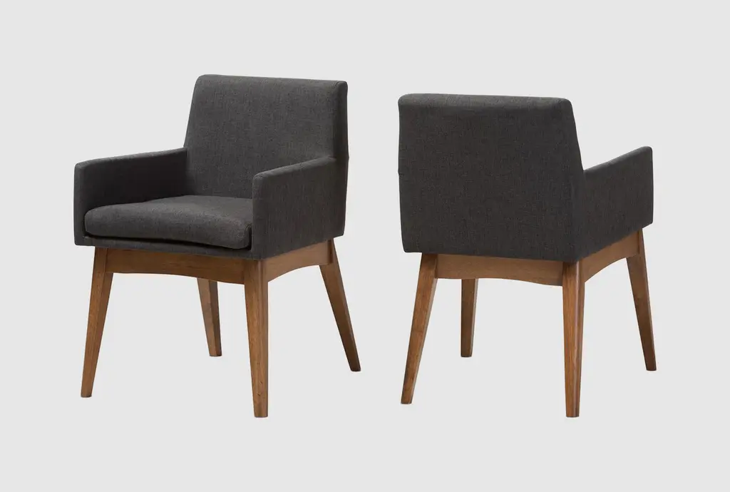The Mila arm dining chair is easy to mix with almost any dining table style. These chairs are fashion forward, comfortable, and come in a variety of neutral fabrics.