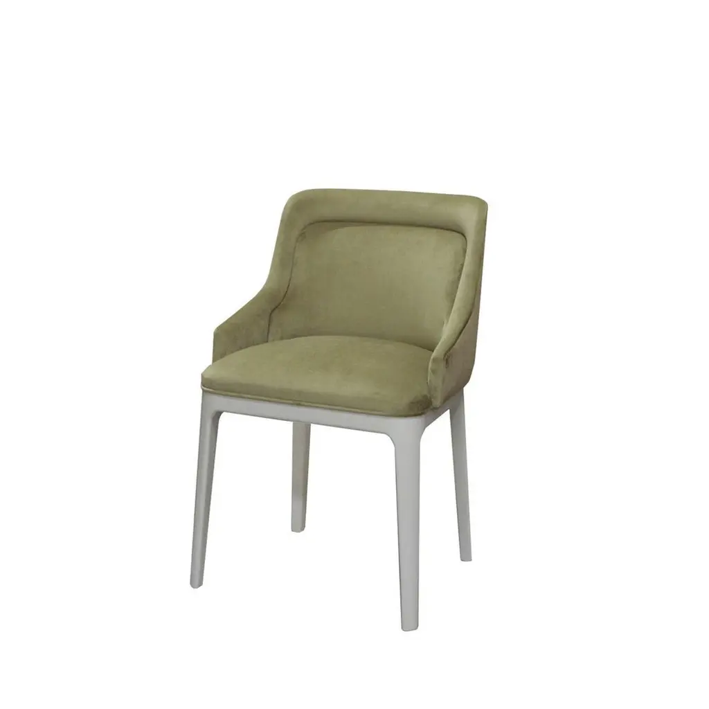 This modern dining chair marries minimalist lines with luxurious comfort. The plush velvet seat, enveloping like a gentle embrace, works stunningly with the matching lacquer color to create a sculptural piece. Sleek curves in the backrest offer subtle intrigue, while the streamlined silhouette maintains a modern flair. This chair is a masterpiece of both form and function, ideal for elevating any dining room to a space of sophisticated comfort.Custom sizes and materials available. Contact us to enquire about COM/COL production, requirements and material shipping instructions.We do our best to expedite production and to ship and deliver product within the listed lead time, however current lead times might be longer due to global shipping backlog and delays. These delays are out of our control and cannot be a reason to cancel an order.