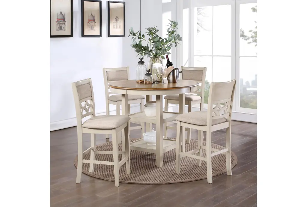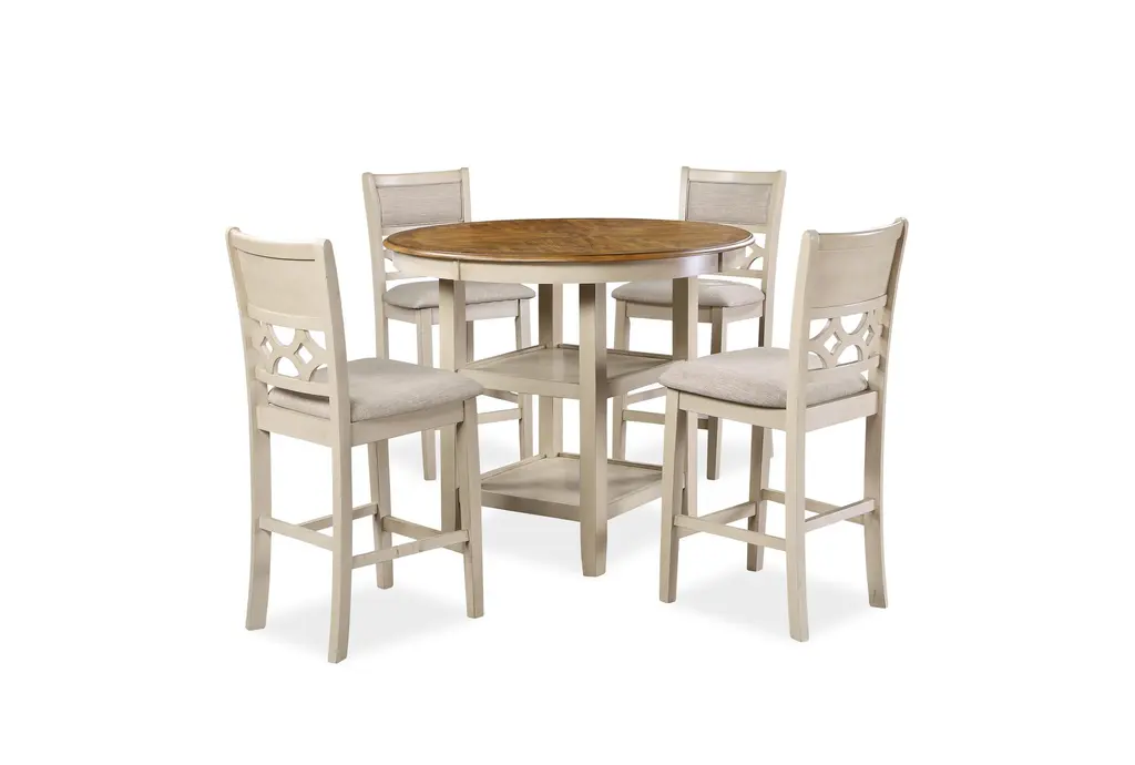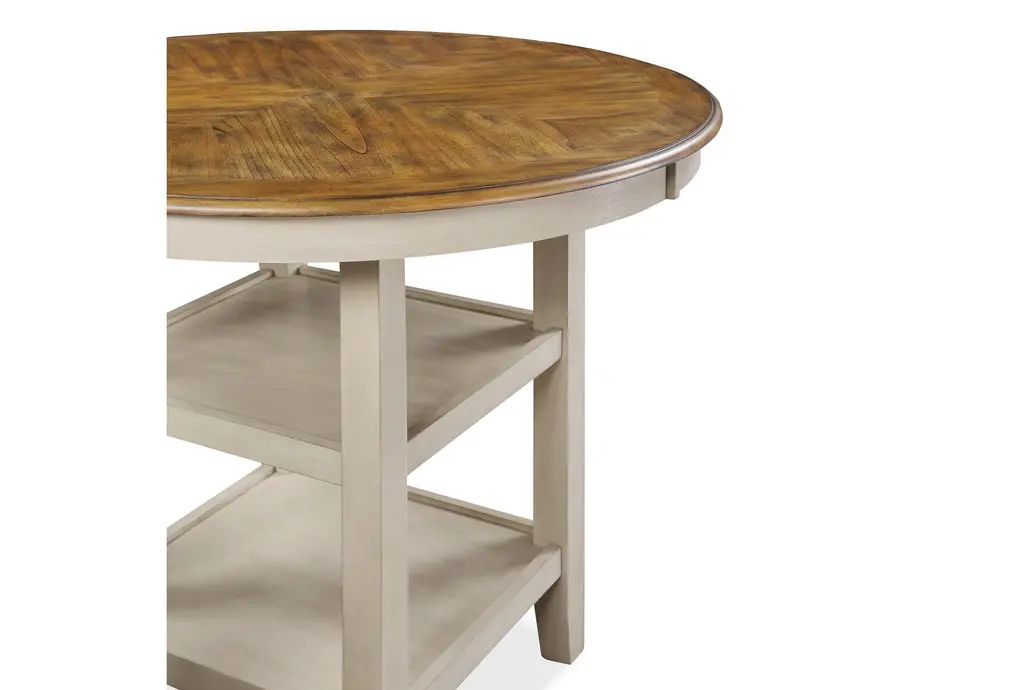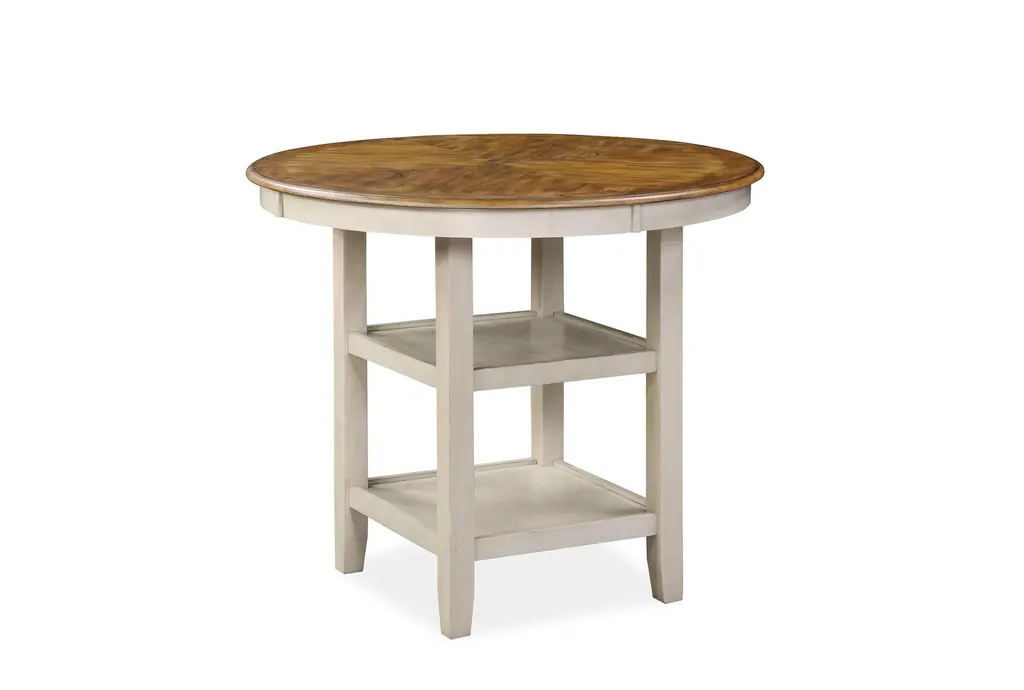 Mitch Natural Round Wood 42" Two Tone Round Counter With Shelves Dining Table Set For 4