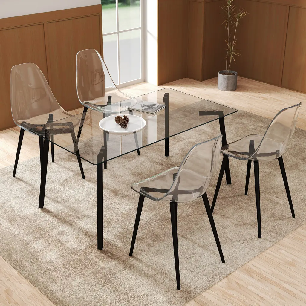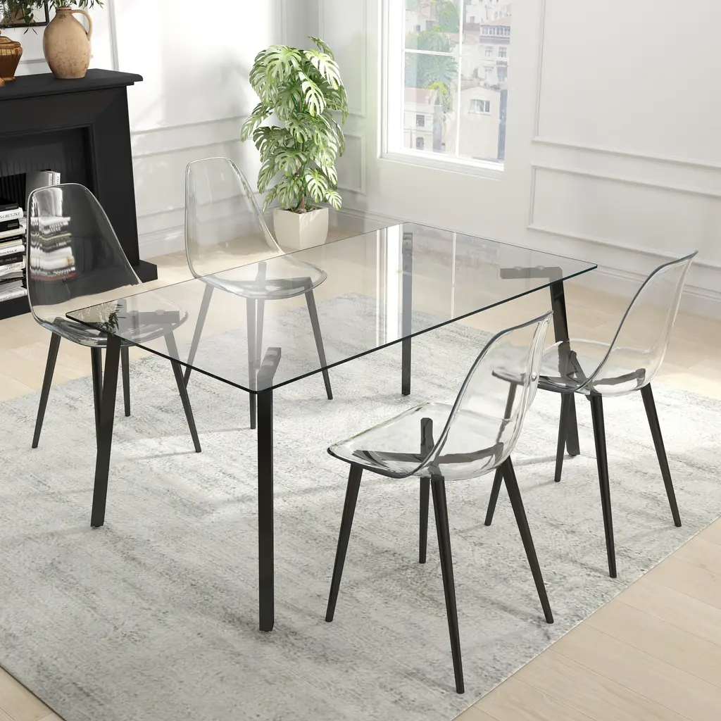 Modern Clear Acrylic Dining Chair Set Of 4 - Black