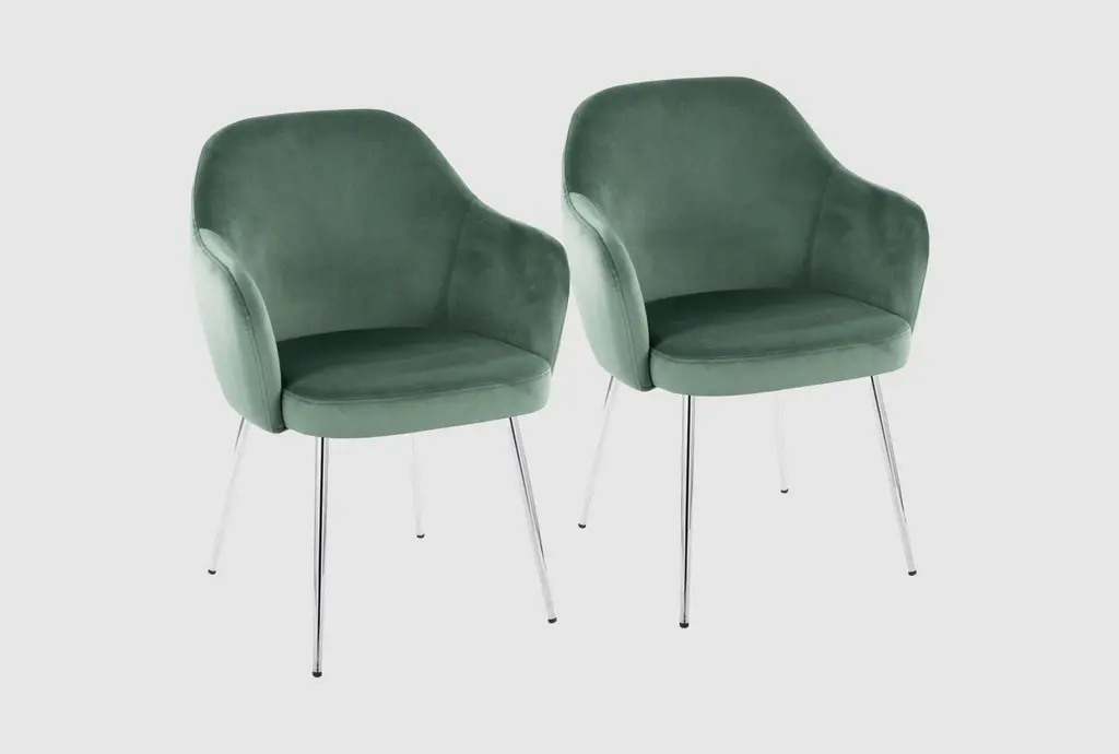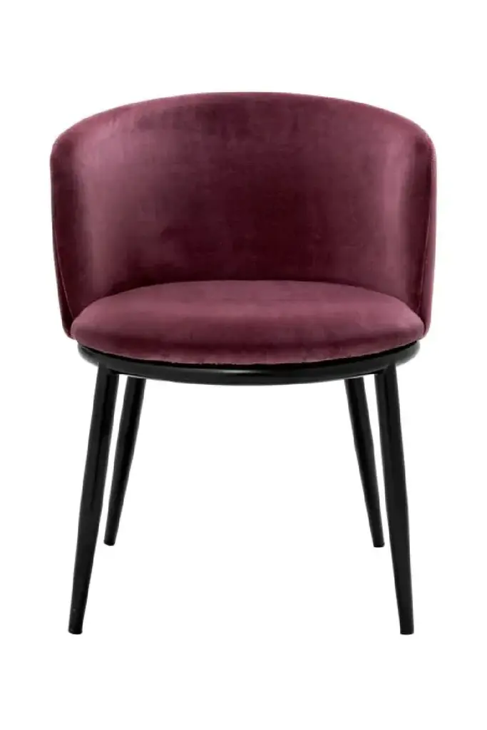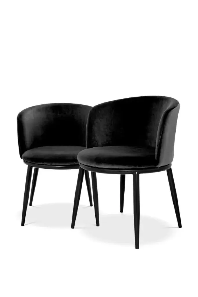 Add vintage charm to your dining room or kitchen with this attractive set of 2 Filmore Modern Minimalist Dining Chairs that are masterfully designed by Eichholtz. The black frames with tapered legs feature a round seat with a bent backrest in luscious upholstery.