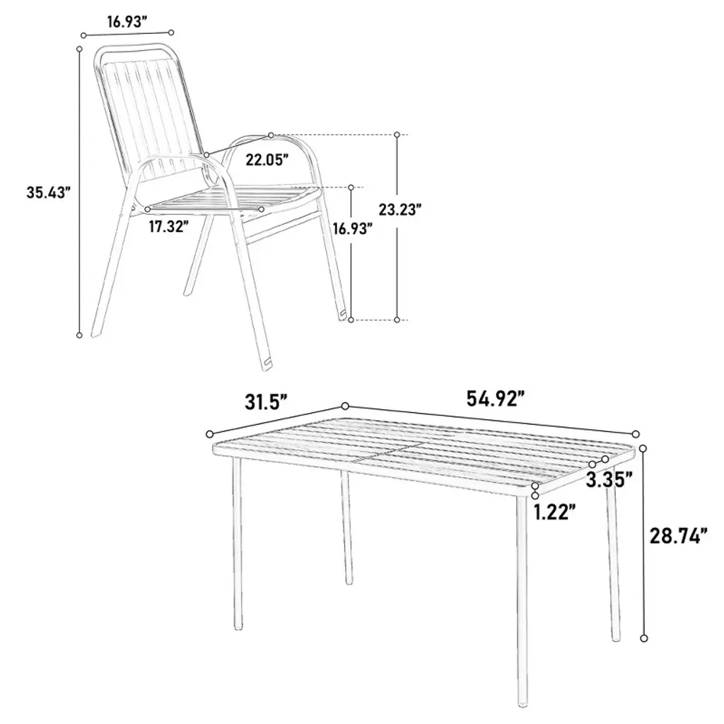 Bring style and comfort to your indoor or outdoor gatherings with this 7-piece patio dining chair set. Featuring a weather-resistant E-coated steel frame, roomy seats for family lounging, and a versatile steel coffee table, it's perfect for garden, patio, or kitchen spaces.