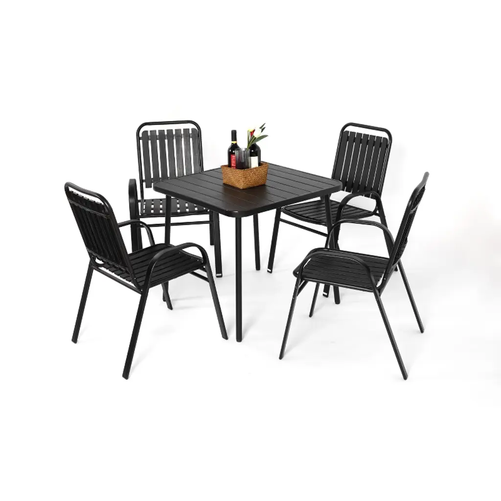 Mondawe Modern 7 Pieces Patio Dining Set, Plastic Chairs And Steel Table Outdoor Set For Garden Patio, Black