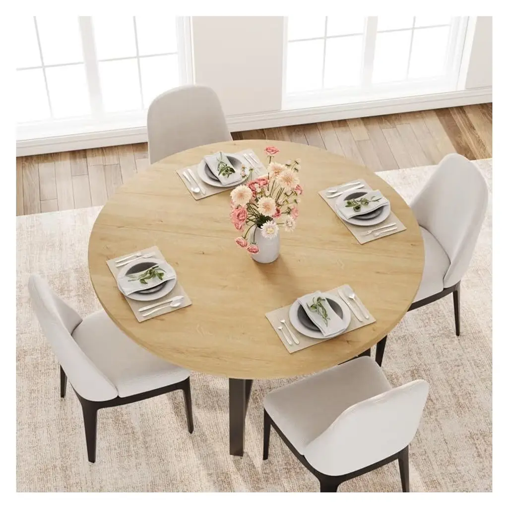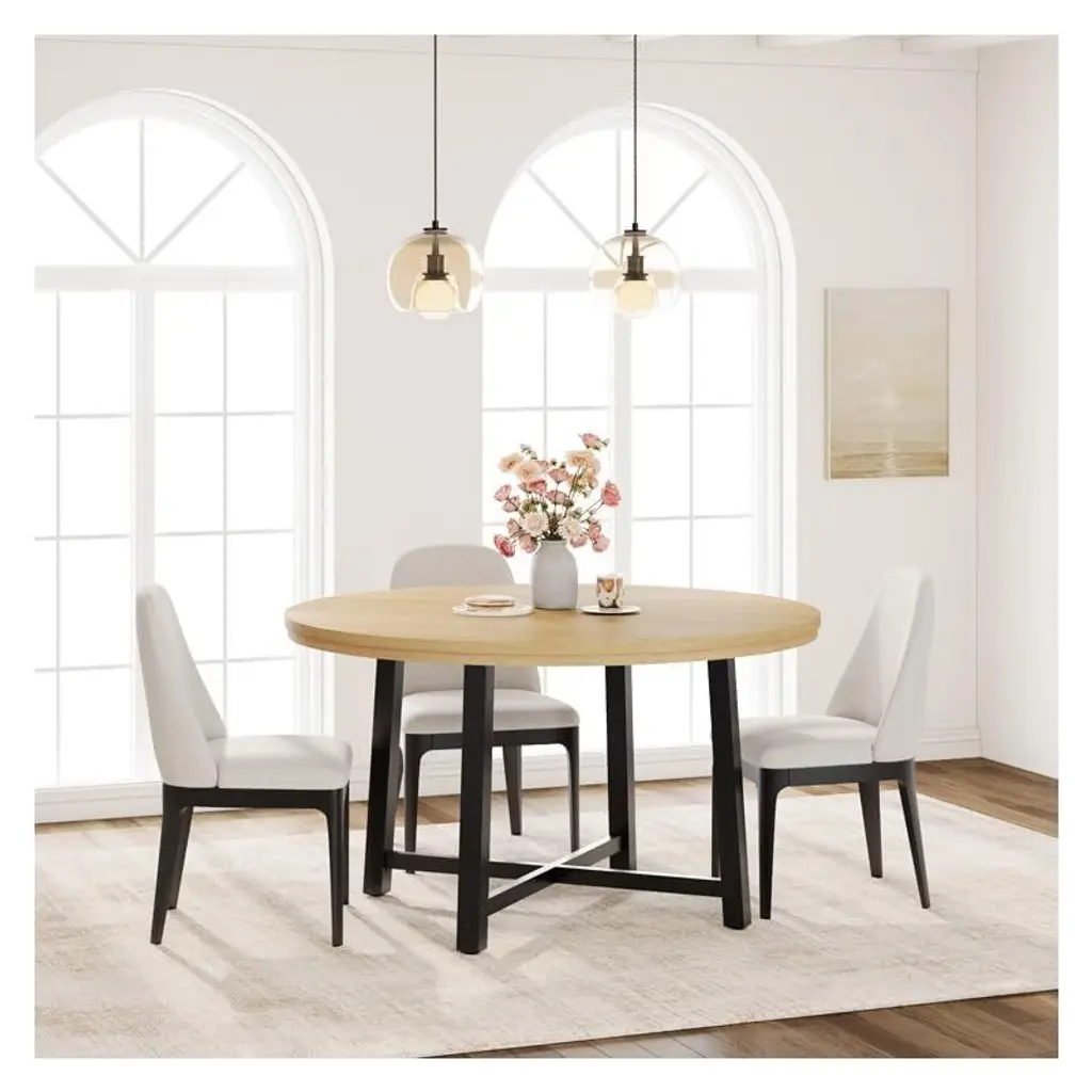 The Nasitip 47" Round Dining Table blends industrial strength with rustic charm to create a dependable and stylish centerpiece for your dining room or kitchen. Designed to comfortably seat 4 to 6 people, this table features a spacious engineered wood top with a warm, rustic brown finish. Reinforced by a heavy-duty metal frame and ultra-thick legs, it offers outstanding stability and support. Flat metal brackets join the tabletop panels securely, eliminating uneven gaps and wobble issues. Whether hosting meals or daily use, this table delivers durability, comfort, and aesthetic appeal.