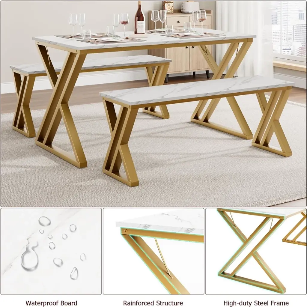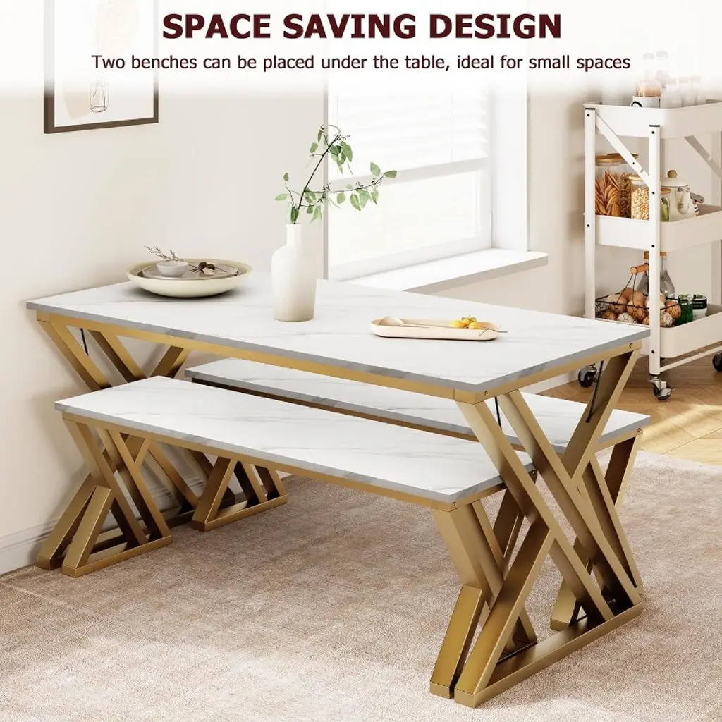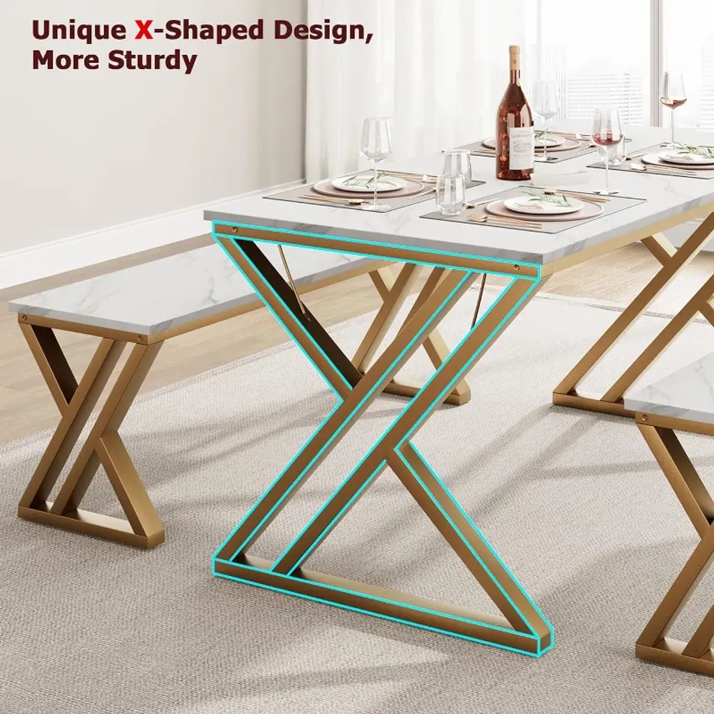 Nasitip 48" Dining Table Set For 4 With 2 Benches - Modern X-shaped Kitchen Table Set