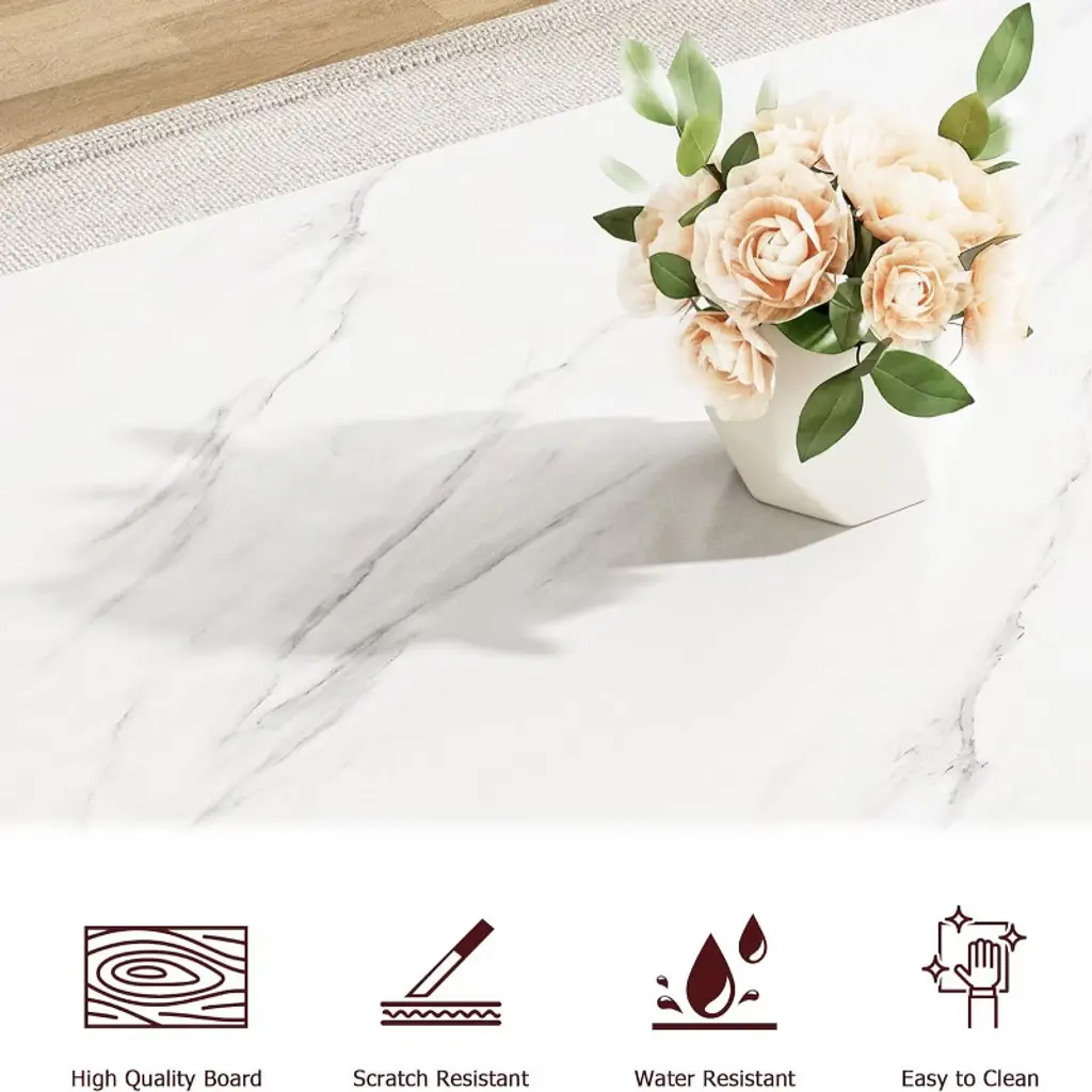 This complete 48" x 30" dining set seats 4 and includes two matching benches that conveniently slide under the table when not in use. The X-shaped metal frame and engineered wood construction provide exceptional stability while maintaining a modern, minimalist aesthetic. The eco-friendly MDF surface is durable and easy to clean, perfect for daily meals. With its space-saving design, this set fits perfectly in kitchens, dining rooms, or small apartments. Easy assembly with included instructions and tools. Backed by reliable after-sales support for any missing/damaged parts. Available in classic white or retro color options to match your home decor.