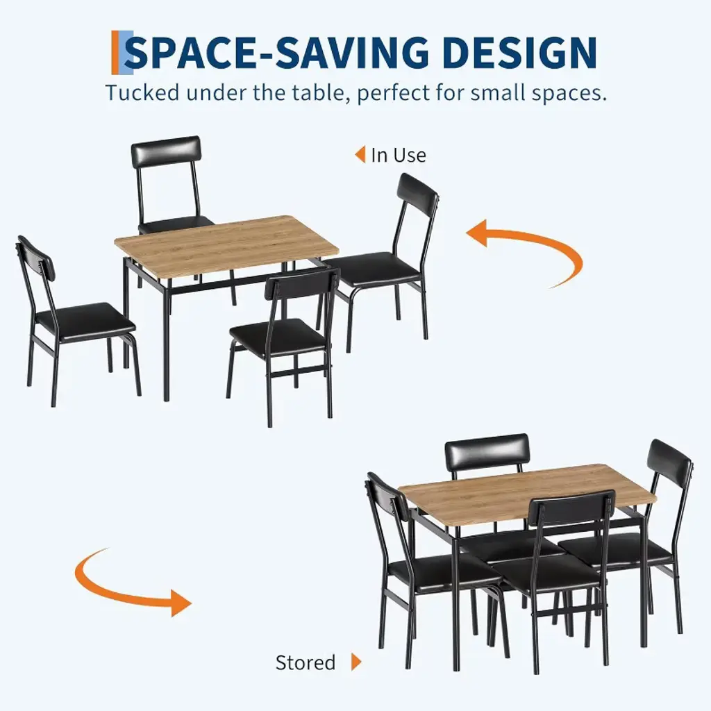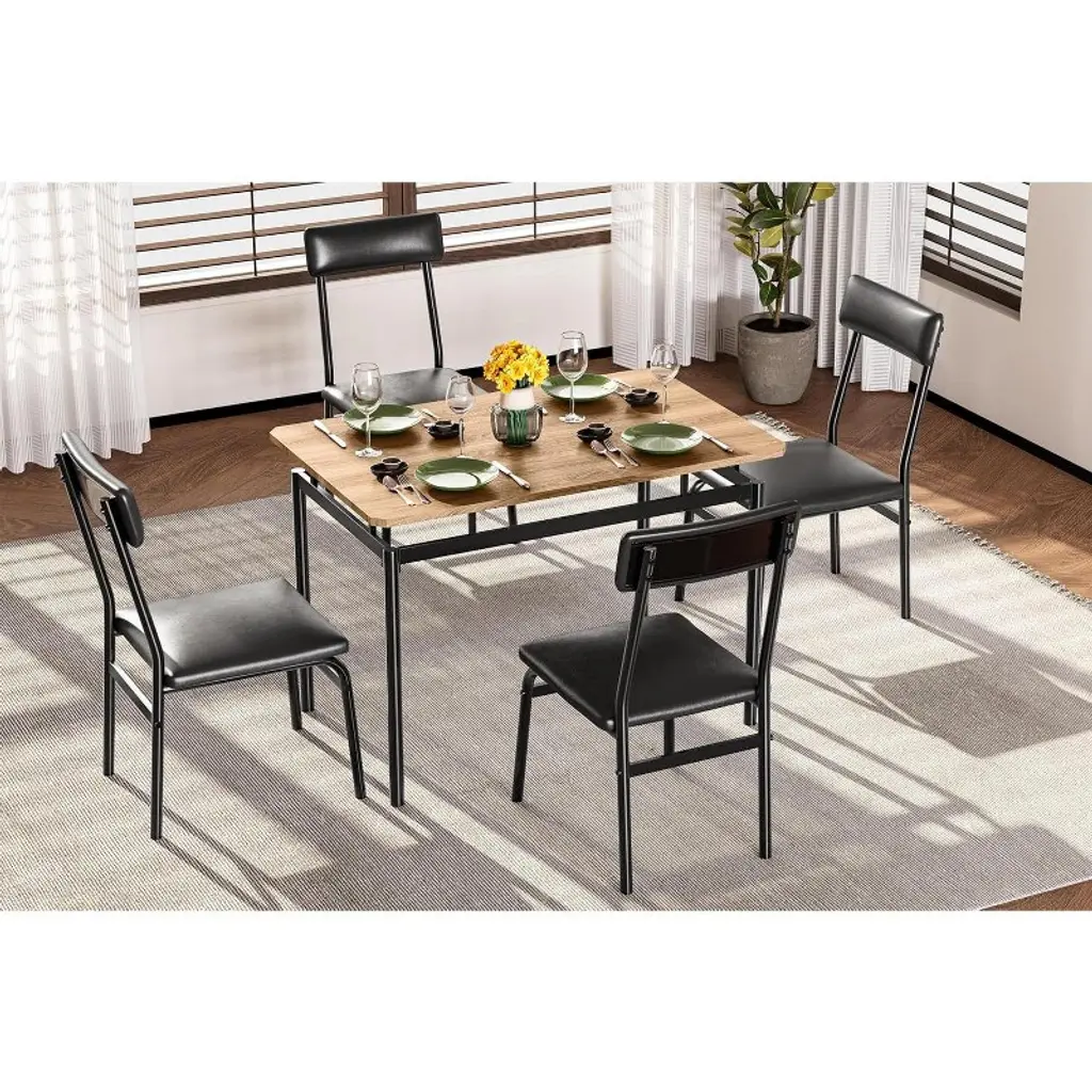 Nasitip 5-piece Dining Set, Wooden Table & 4 Pu Upholstered Chairs, Industrial Metal Frame Kitchen Set, Black