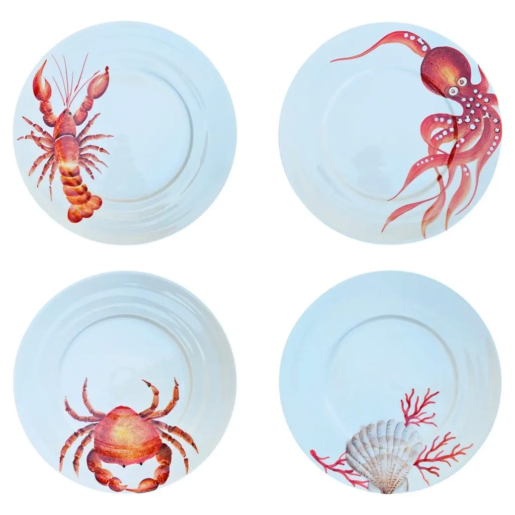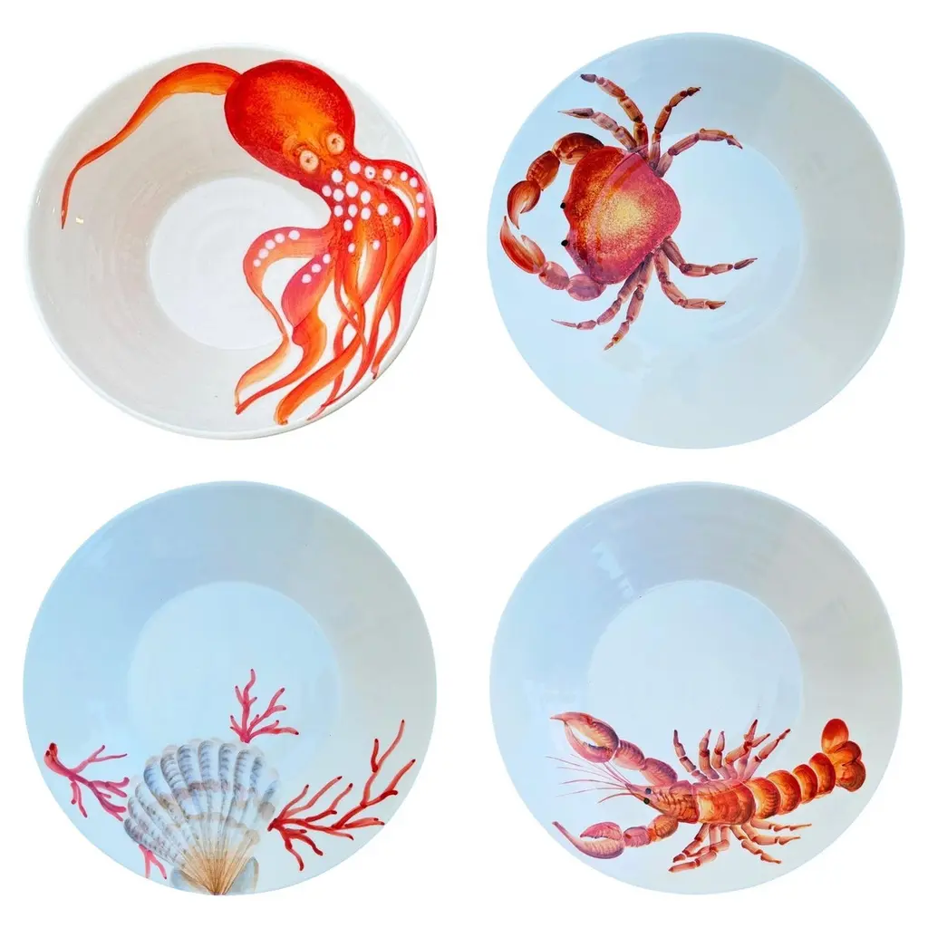 Inspired by the underwater wonders, these fine ceramic plates ideally complement coastal tables. A minute hand-painting process where the monochrome decoration is inspired by sea creatures kept in the "Cabinets de curiosités". Dishwasher safe belongs to a set that includes a soup, a dinner plate, and a dessert plate.