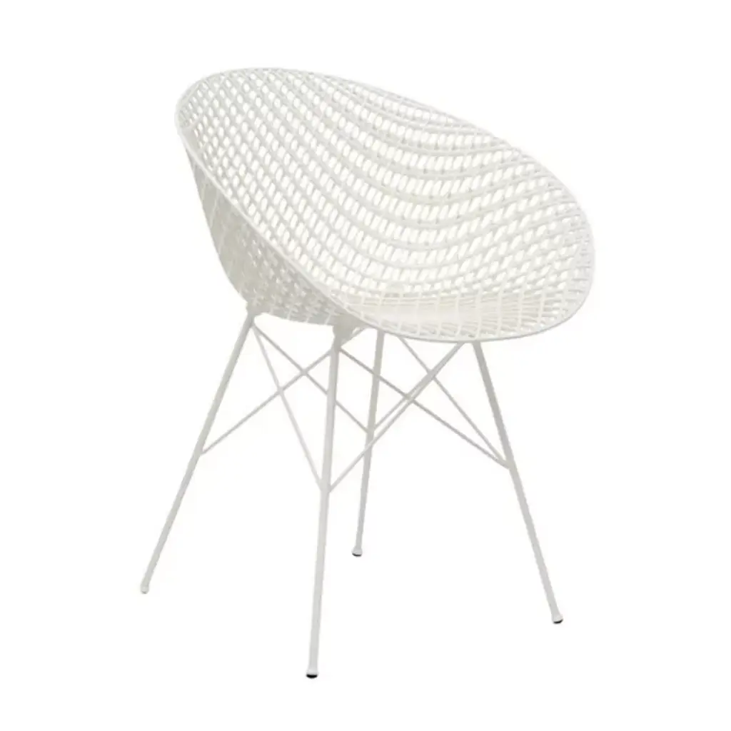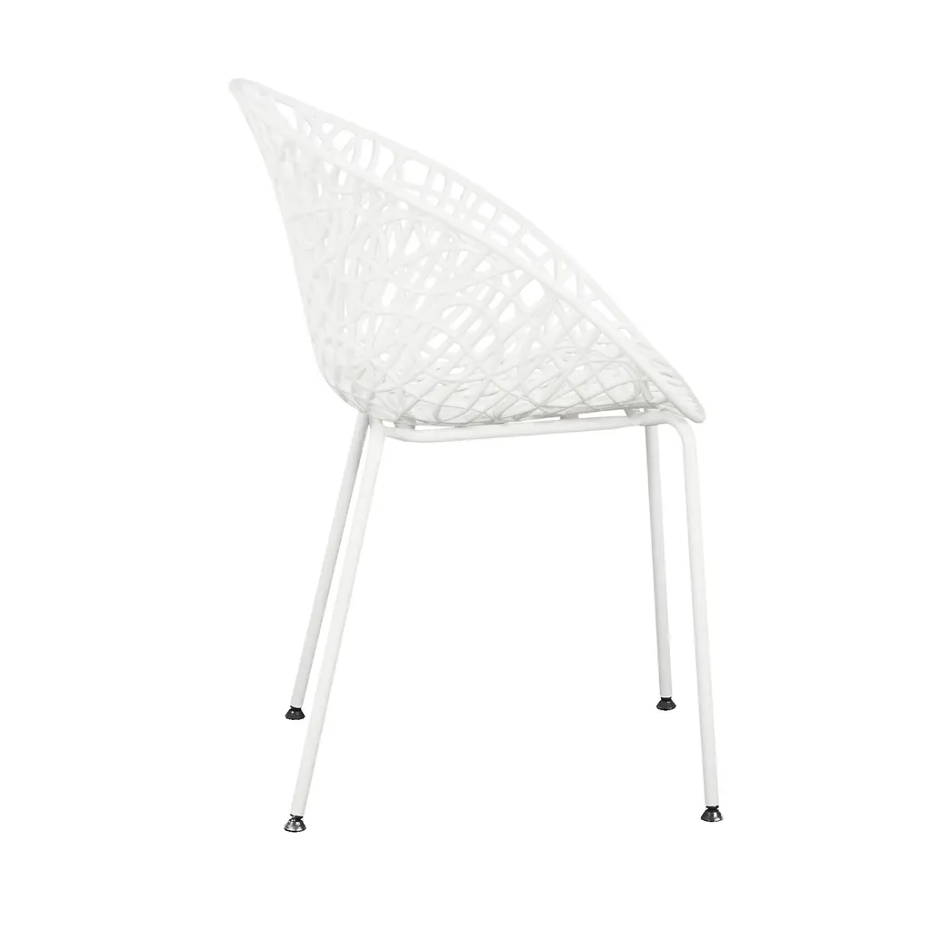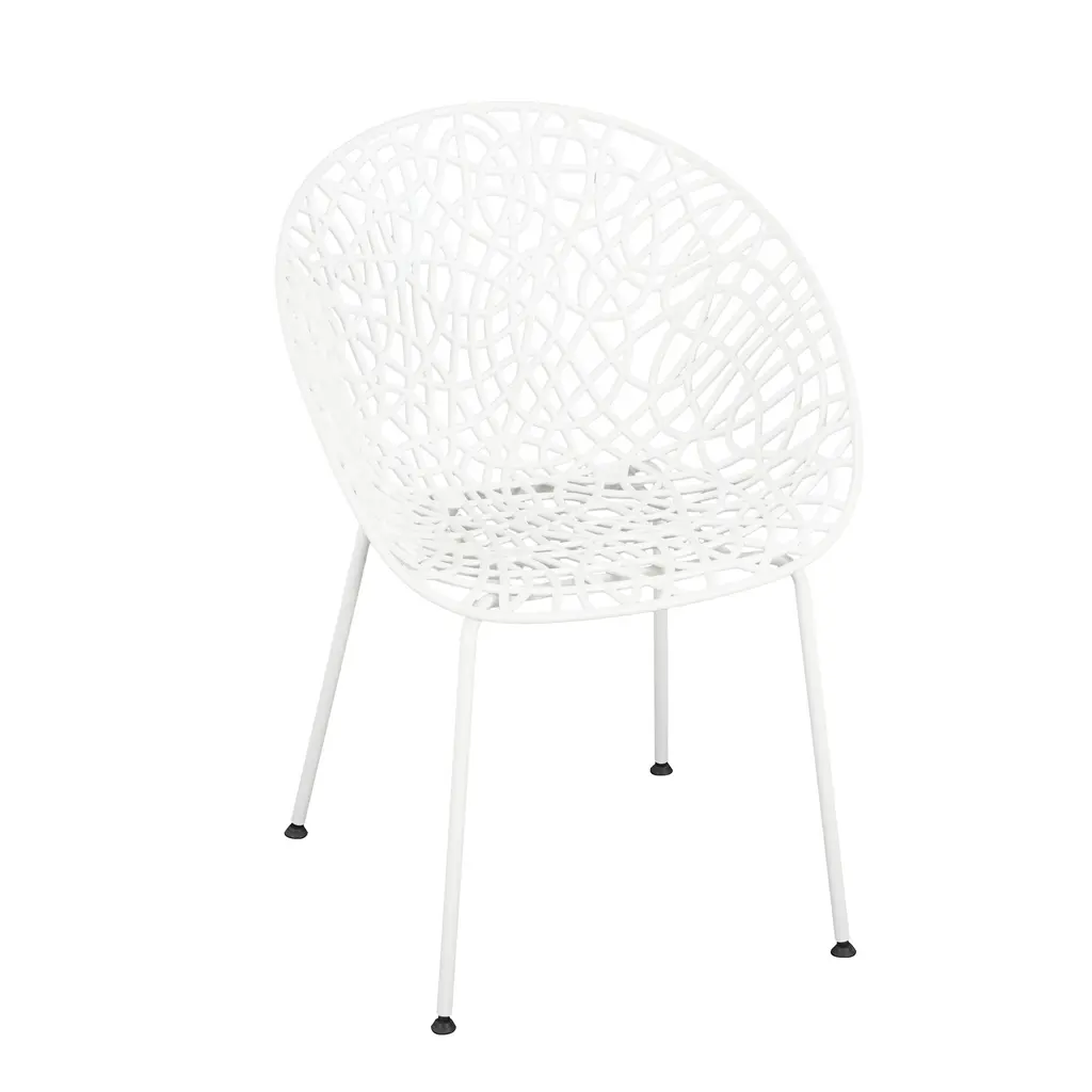 Accentuate your outdoor dining set with chairs of stunning charm and convenient function.Featuring weather-resistant properties and a unique plastic blend material, our outstanding outdoor dining chair set provides astonishingly stable frames that will last you for years to come.This minimalistic design balances clean-cut lines and a perforated diamond pattern to create an impressive look of sturdy structure and stylish comfort.Finished with a modern vibe, our chair set is sure to transform any backyard space into a refined masterpiece.