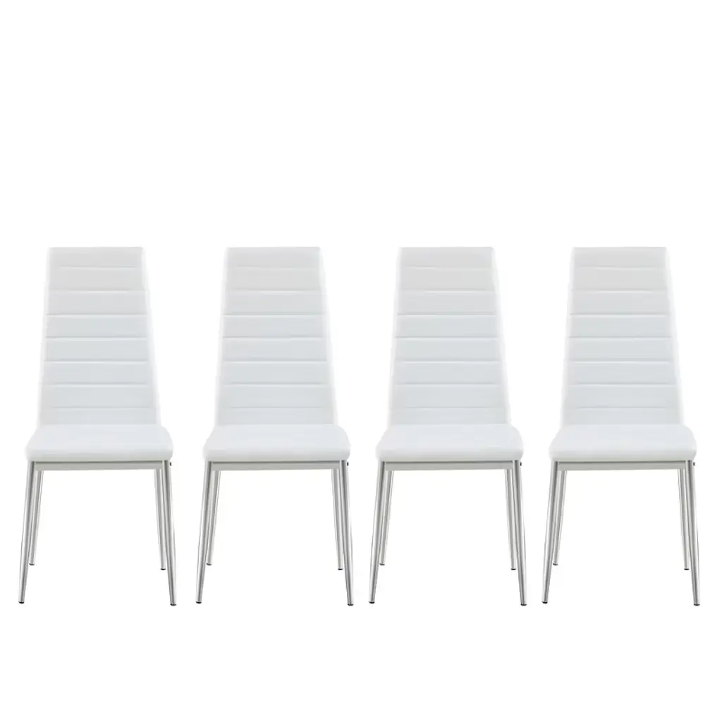 Orrd Modern Style Dining Chair Set For 4 With Comfortable Pu Leather And Silver Chrome Plated Chair Legs,white
