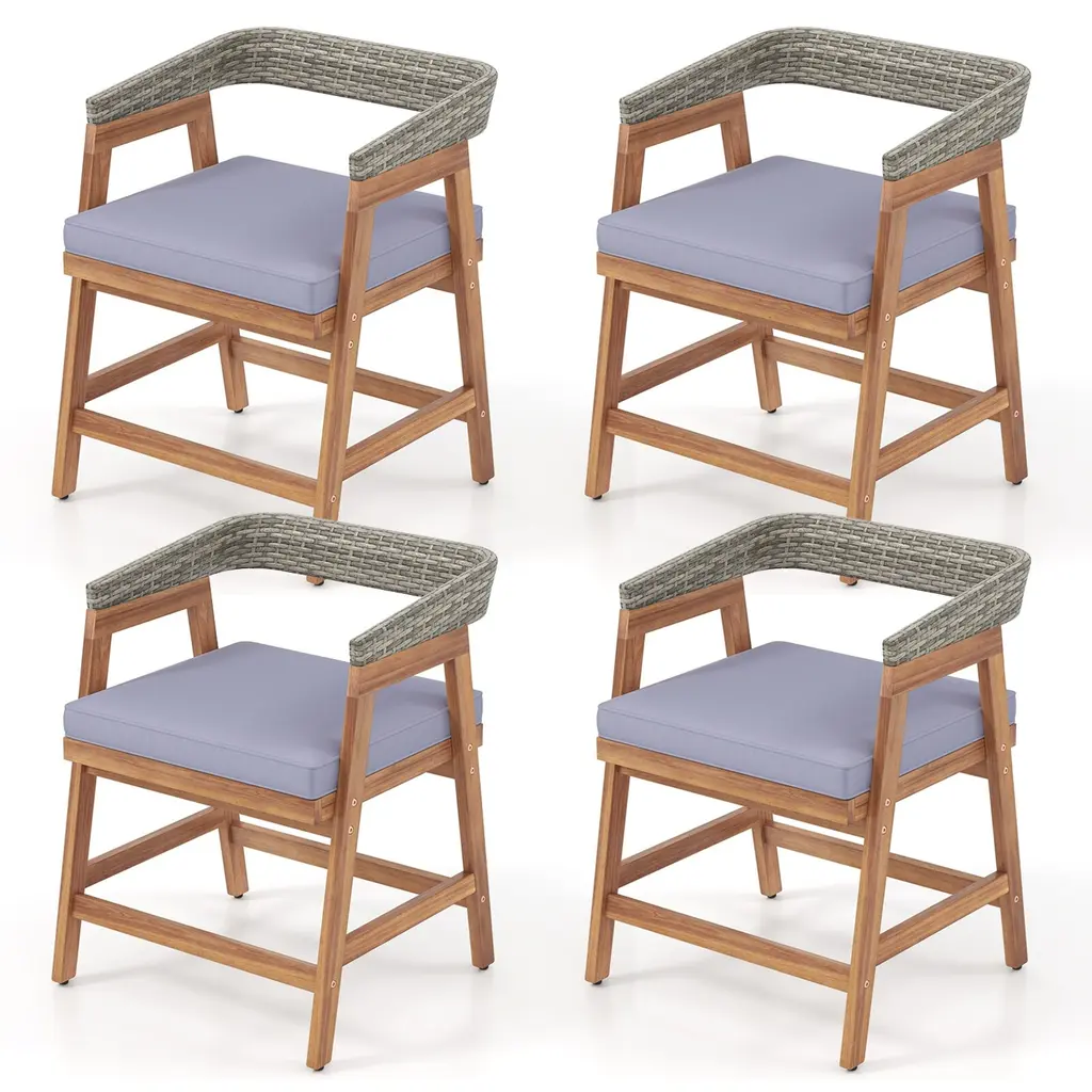 Outdoor Acacia Wood Patio Wicker Dining Chairs Set Of 4 With Seat Cushion-Gray - Multi - Multi