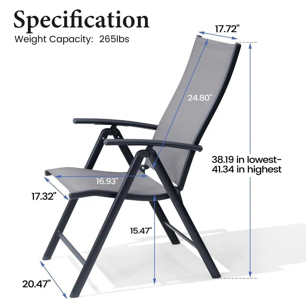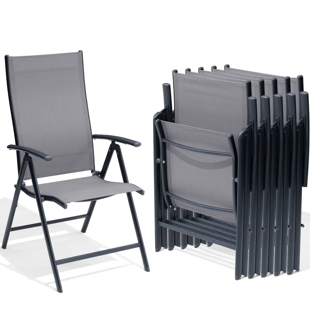 Outdoor Adjustable Recliner Folding Dining Chair - Grey - 4Pc