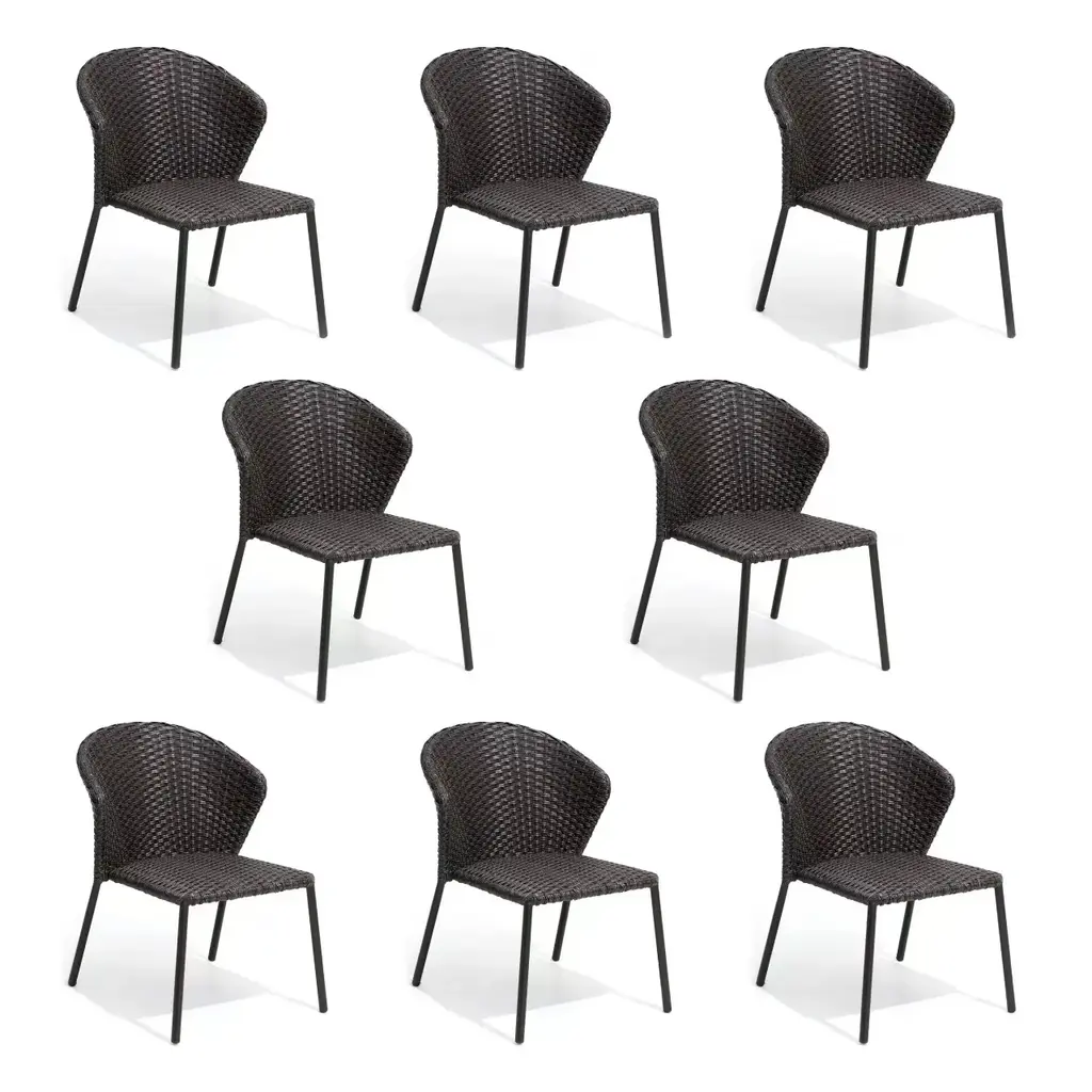 Outdoor Dining Armchairs In Weather Resistant Wicker - Set Of 8