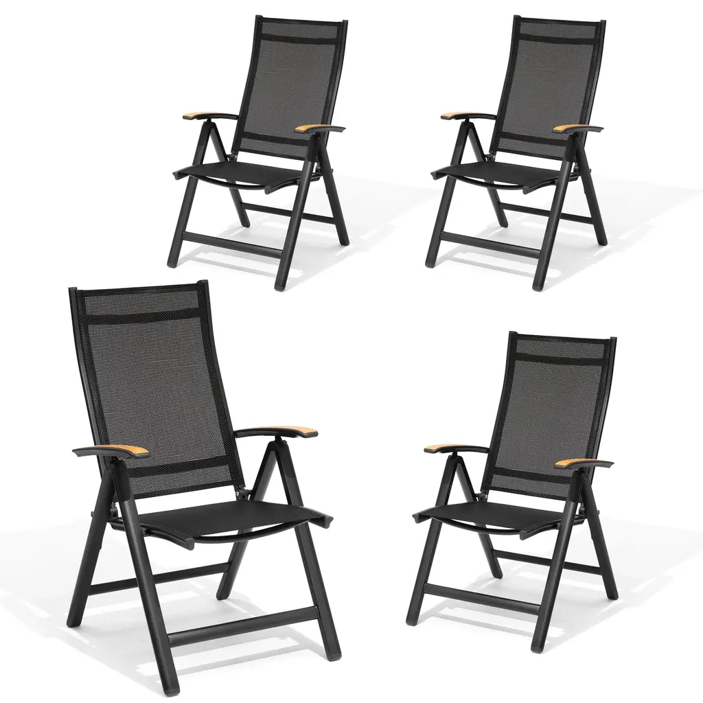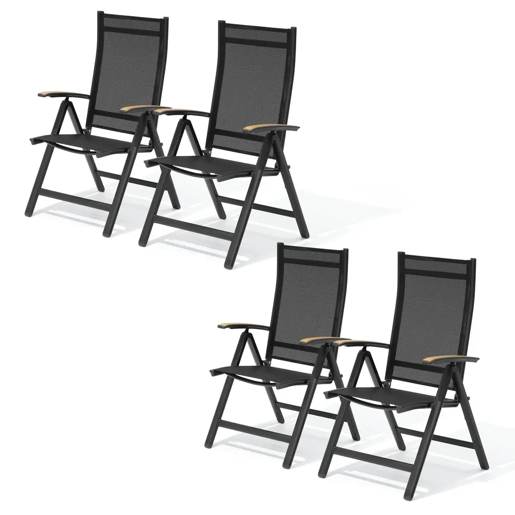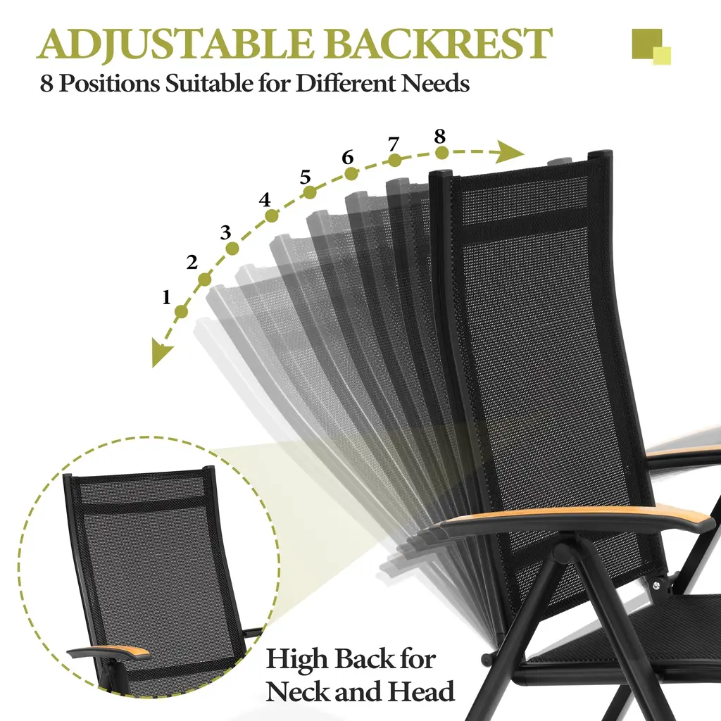 Outdoor Foldable Dining Chairs With Adjustable Back And Arms - See Picture - 6-Piece Set, Black