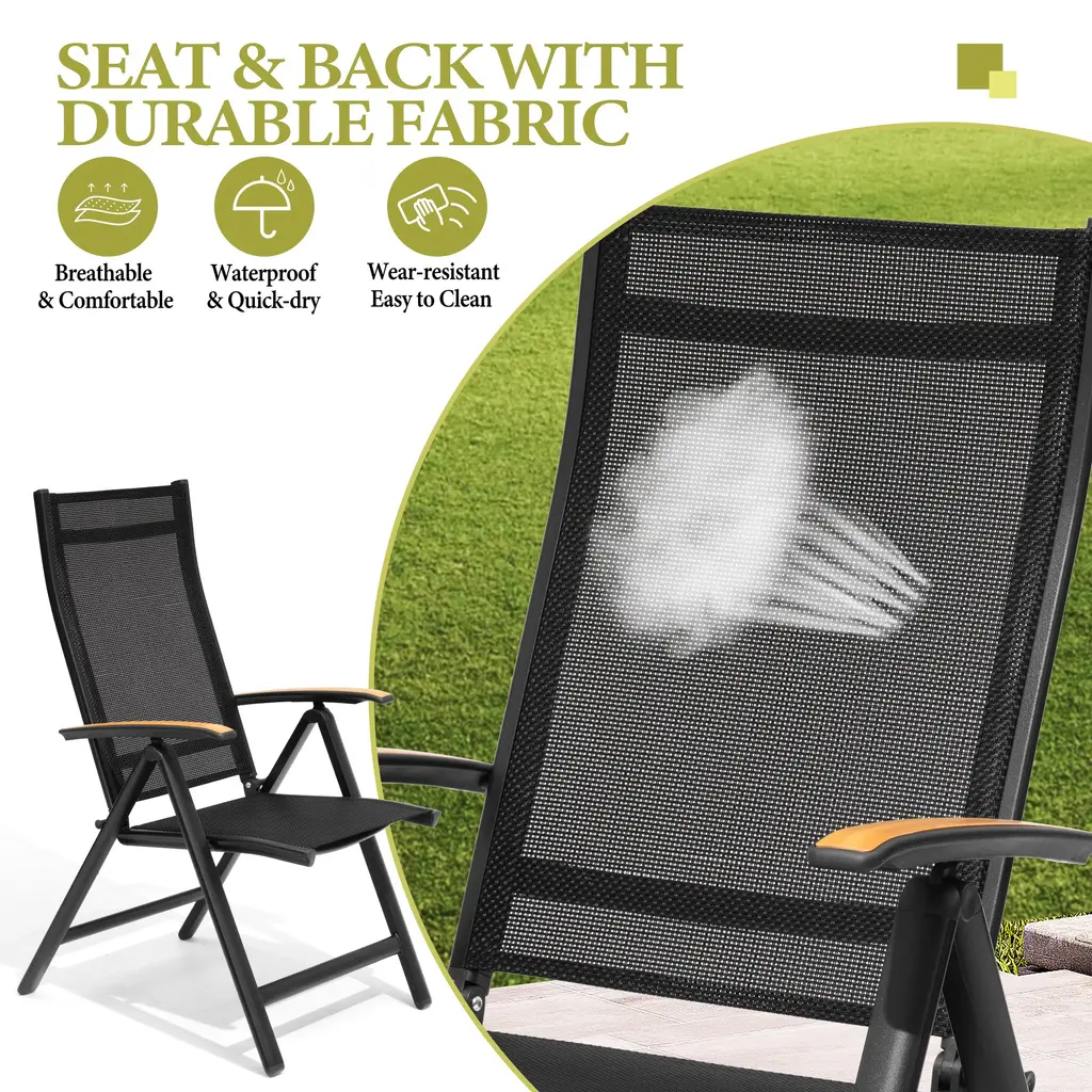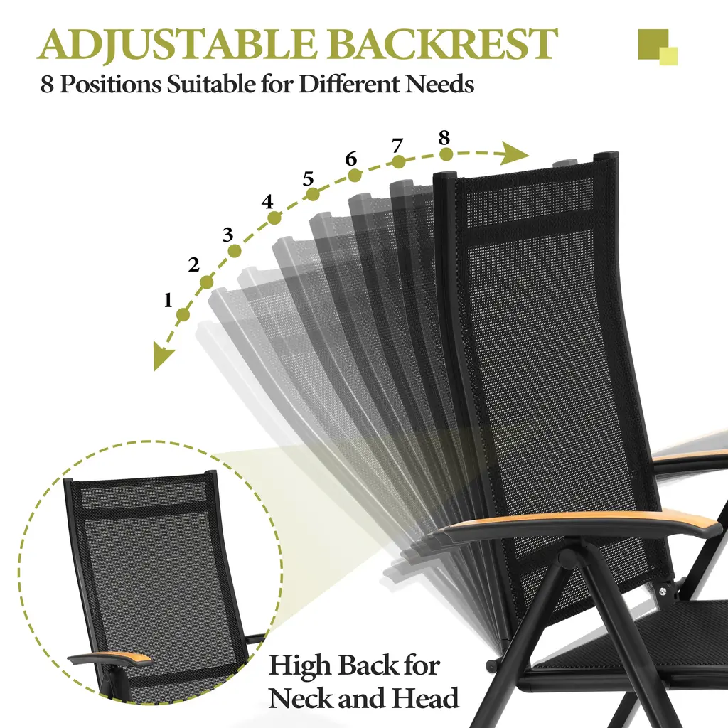 Outdoor Foldable Dining Chairs With Adjustable Back And Arms - See Picture - 8-Piece Set, Black