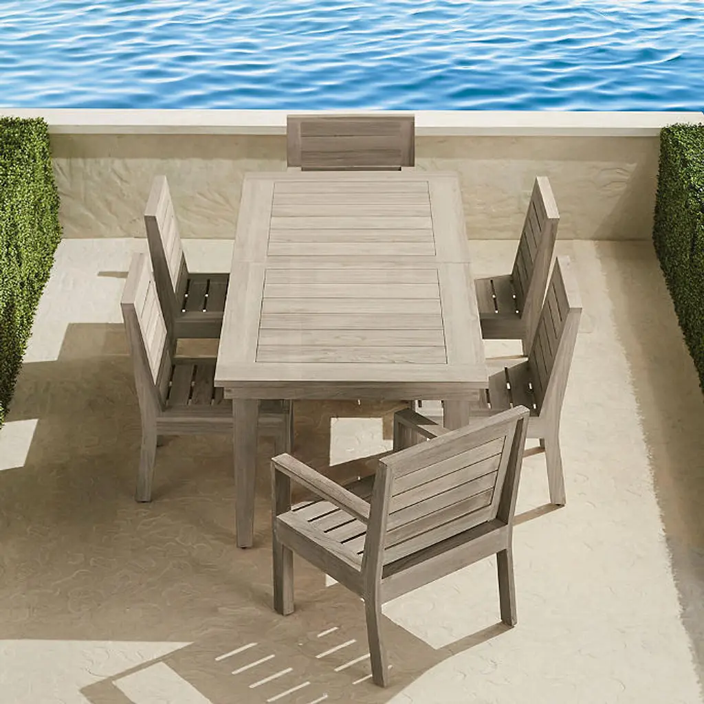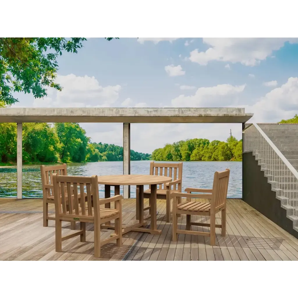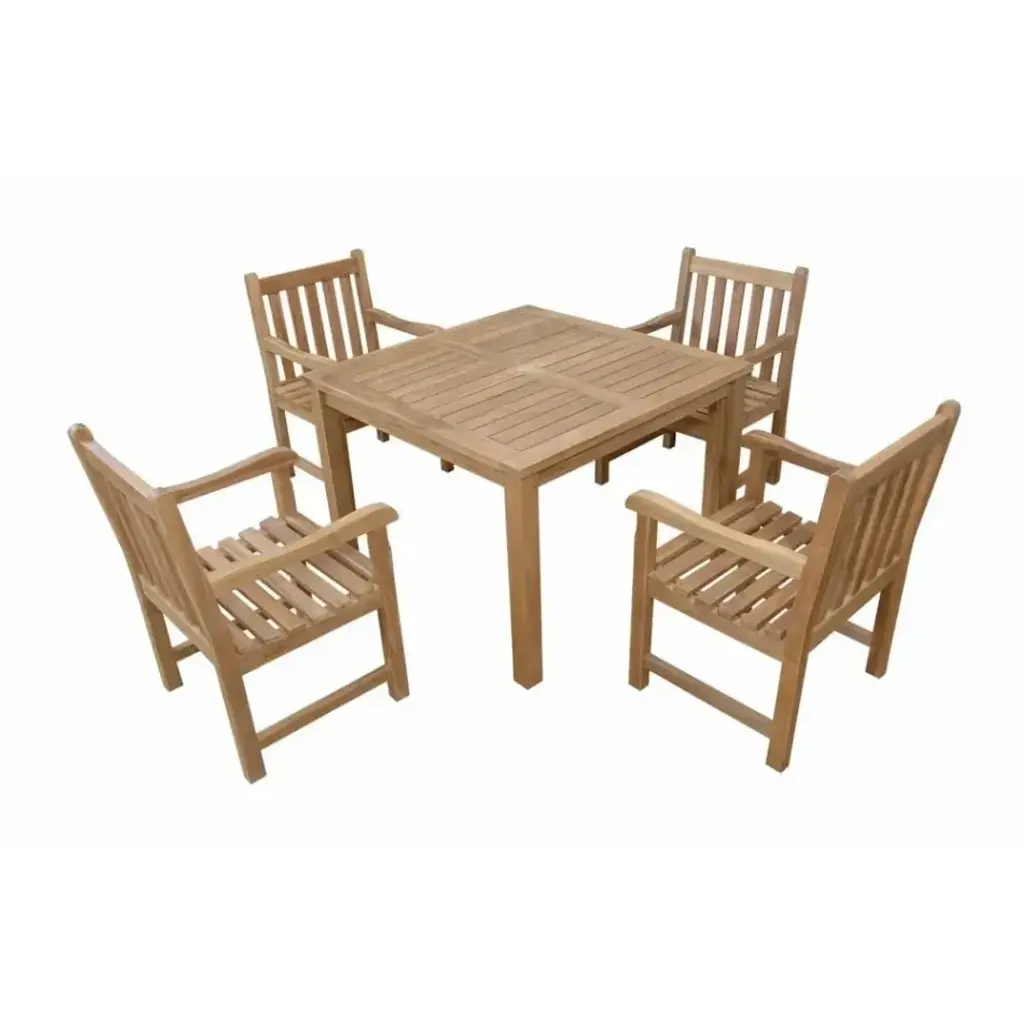 Our Montage Braxton Collection is a gorgeous set for your backyard or outdoor patio. It features the very compact 42" Square Montage Table and 4 pieces of the Braxton Dining Armchair, which is very sturdy and comfortable featuring contoured seating and curved armrest designed from machinery. The collection is made from solid teakwood, process in kiln dried and treated in a waterbase coat for added protection against the weather by skillful carpenters and full machinery. The teak color will blend with the environment of your backyard naturally. Add Sunbrella cushions for comfort and spend the evening with the company of friends or family. Cushion is optional.